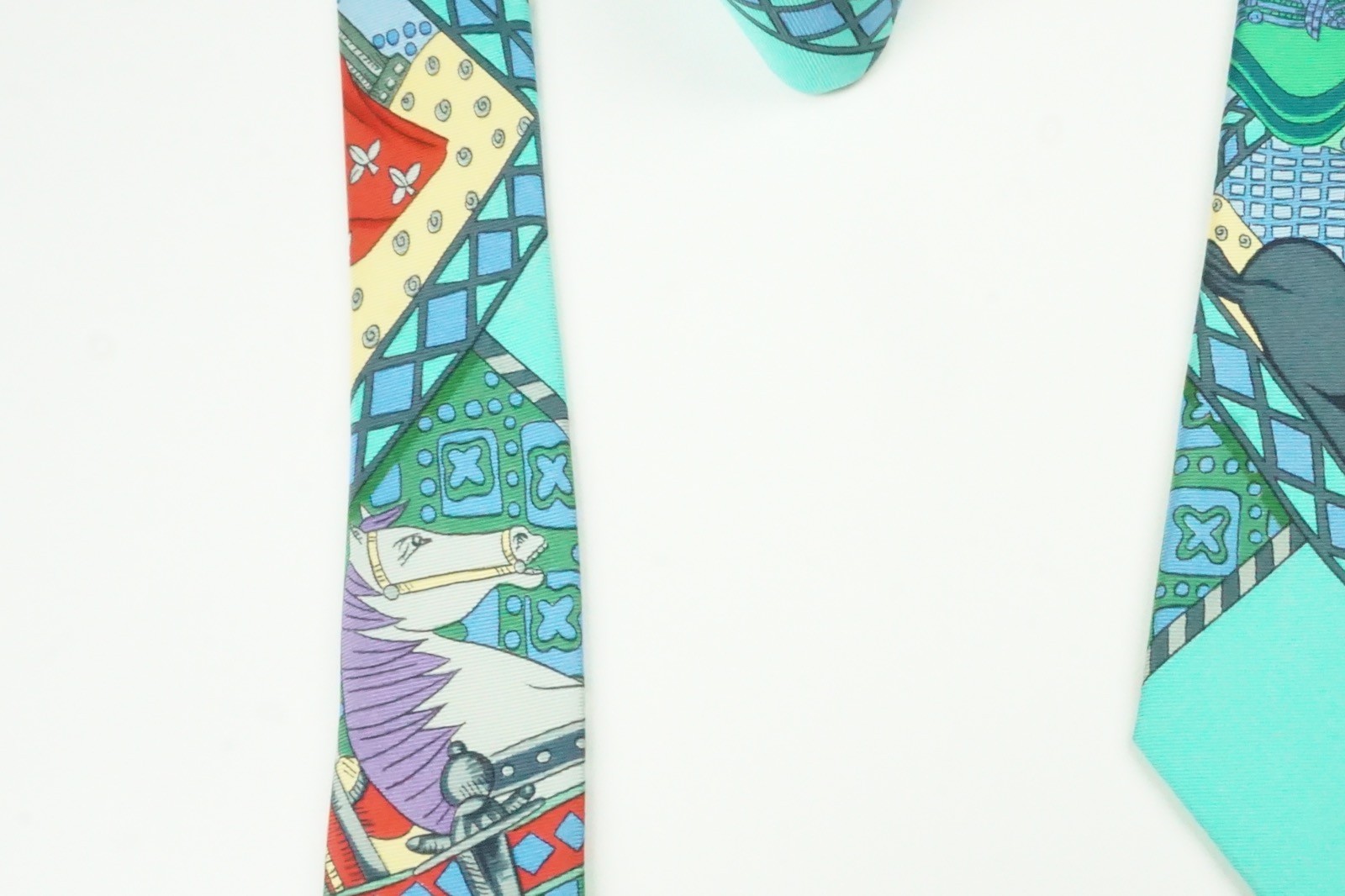как выглядит Hermes Bright Multicolor Figure Print Silk Scarf Tie Made in France фото