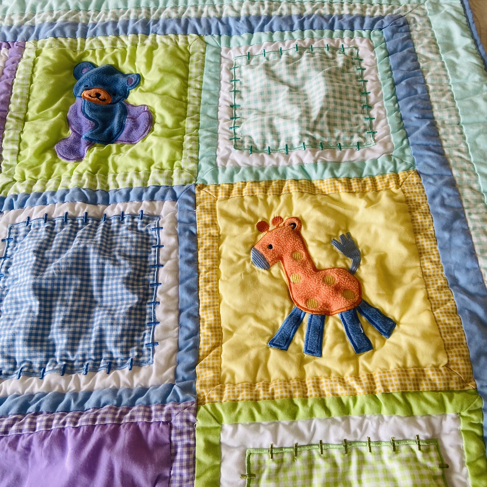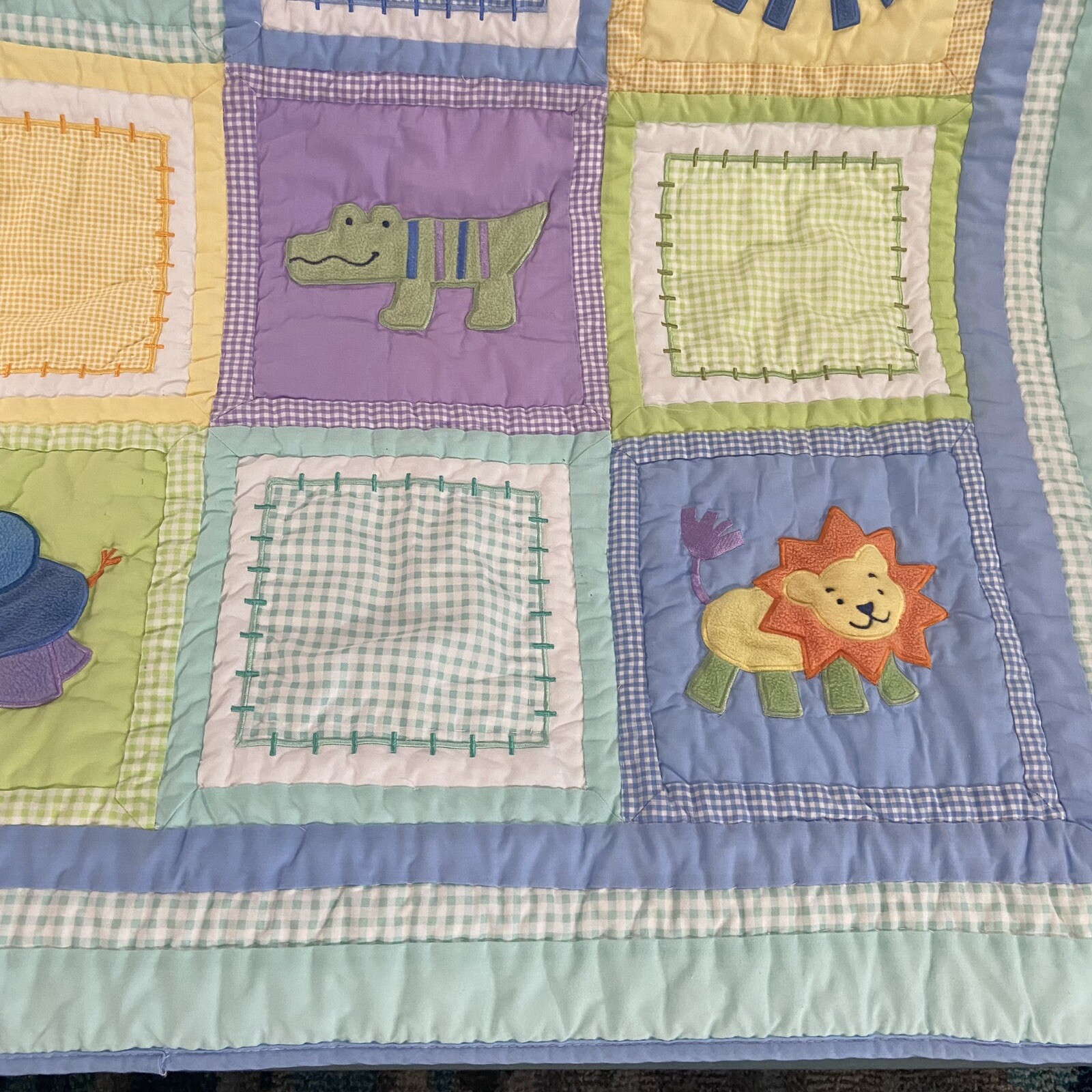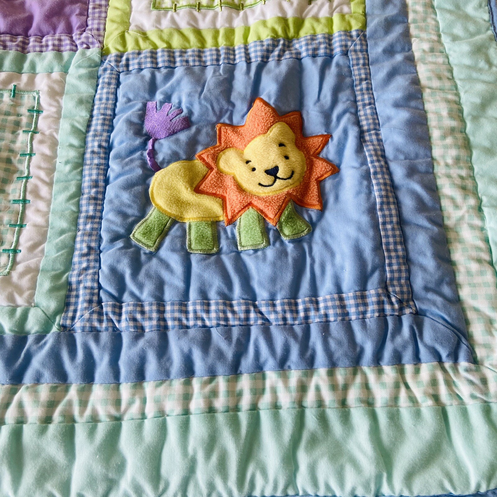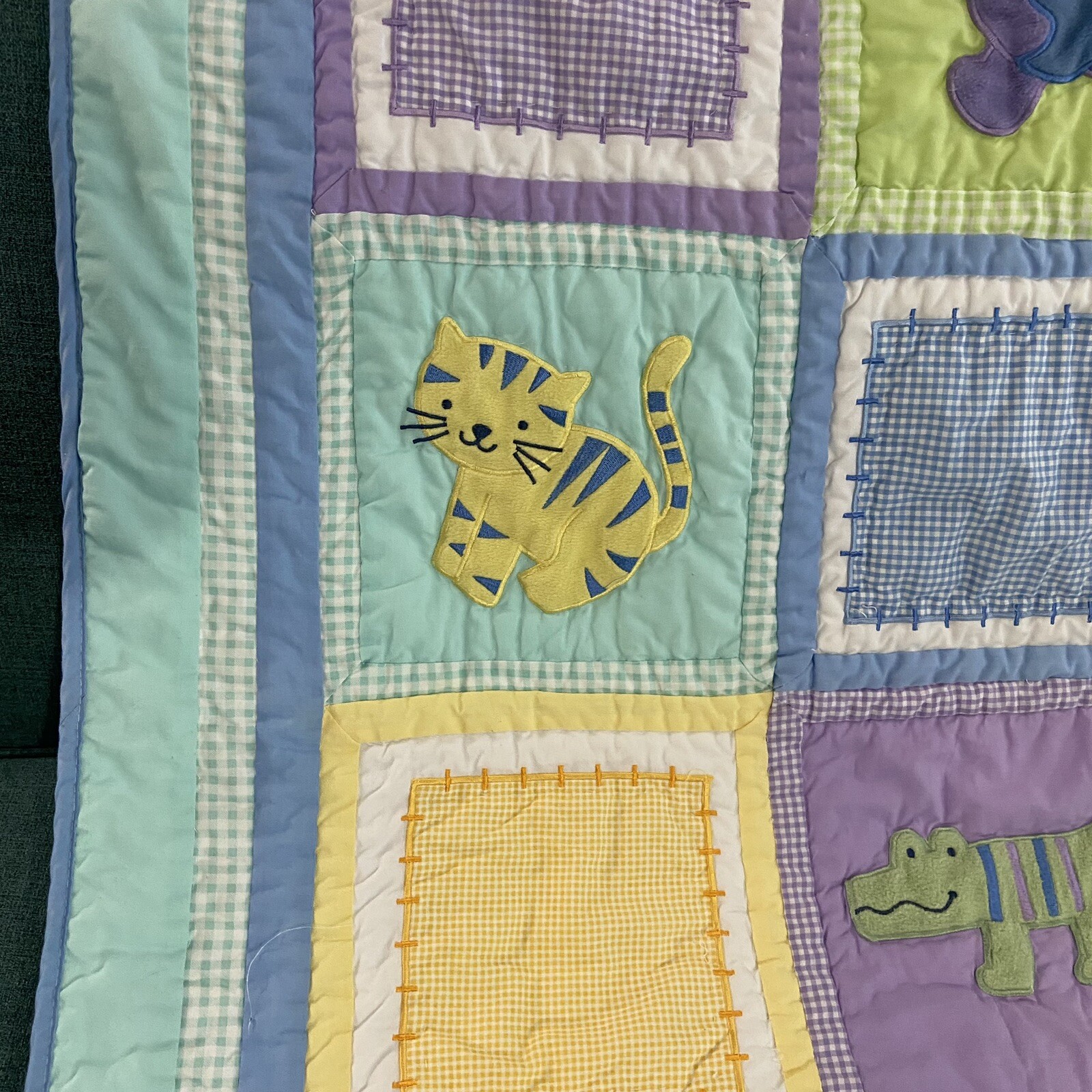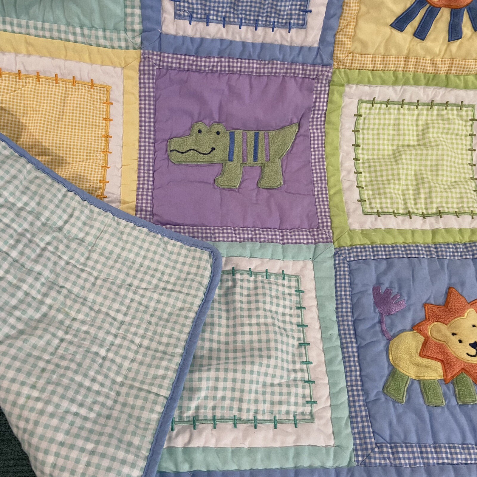 как выглядит Tiddlwinks Safari Animal Print Quilt Crib Baby Blanket 36x45 Patchwork Squares фото