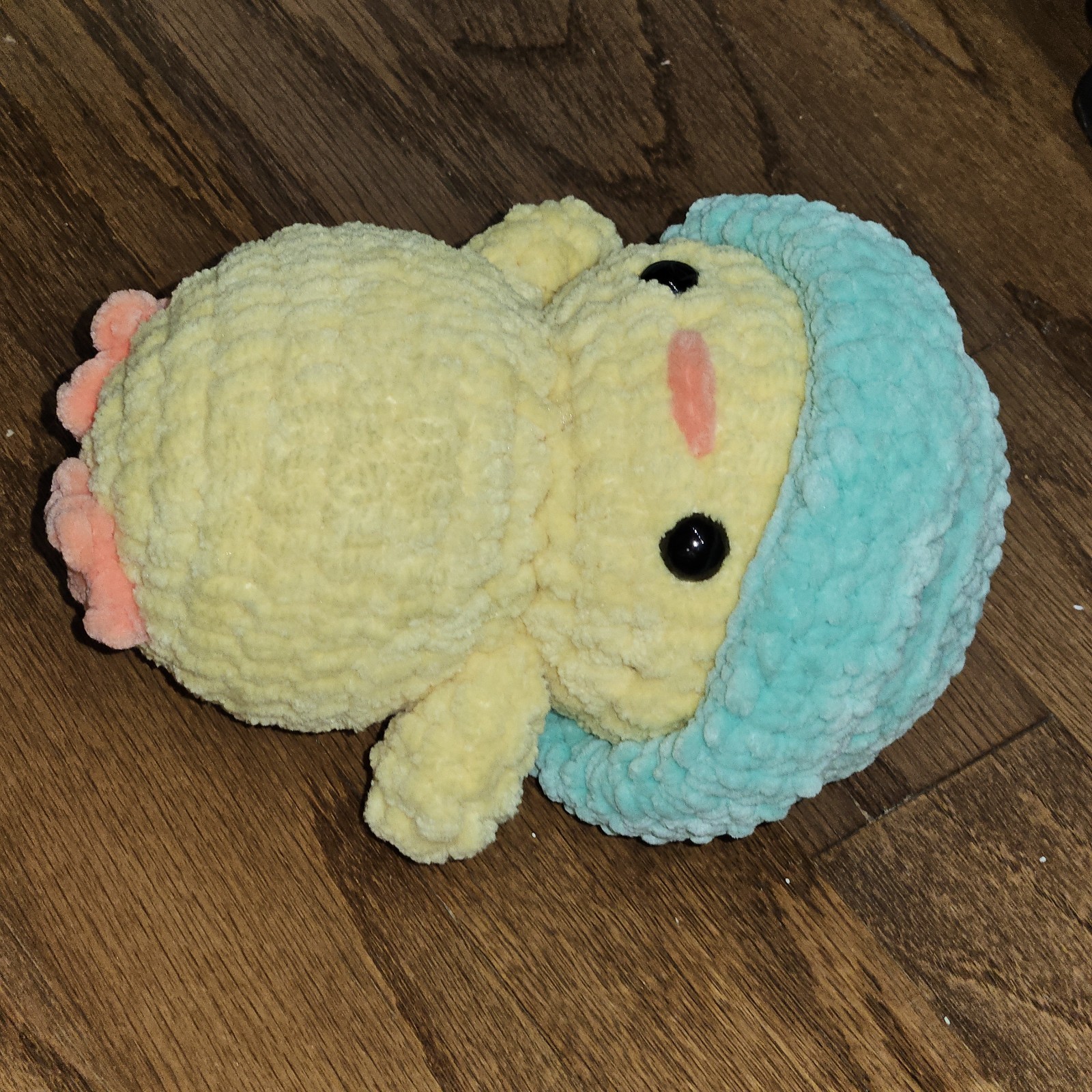 NEW Crochet Duck Yellow Handmade USA Removable Green Bucket Hat MEDIUM