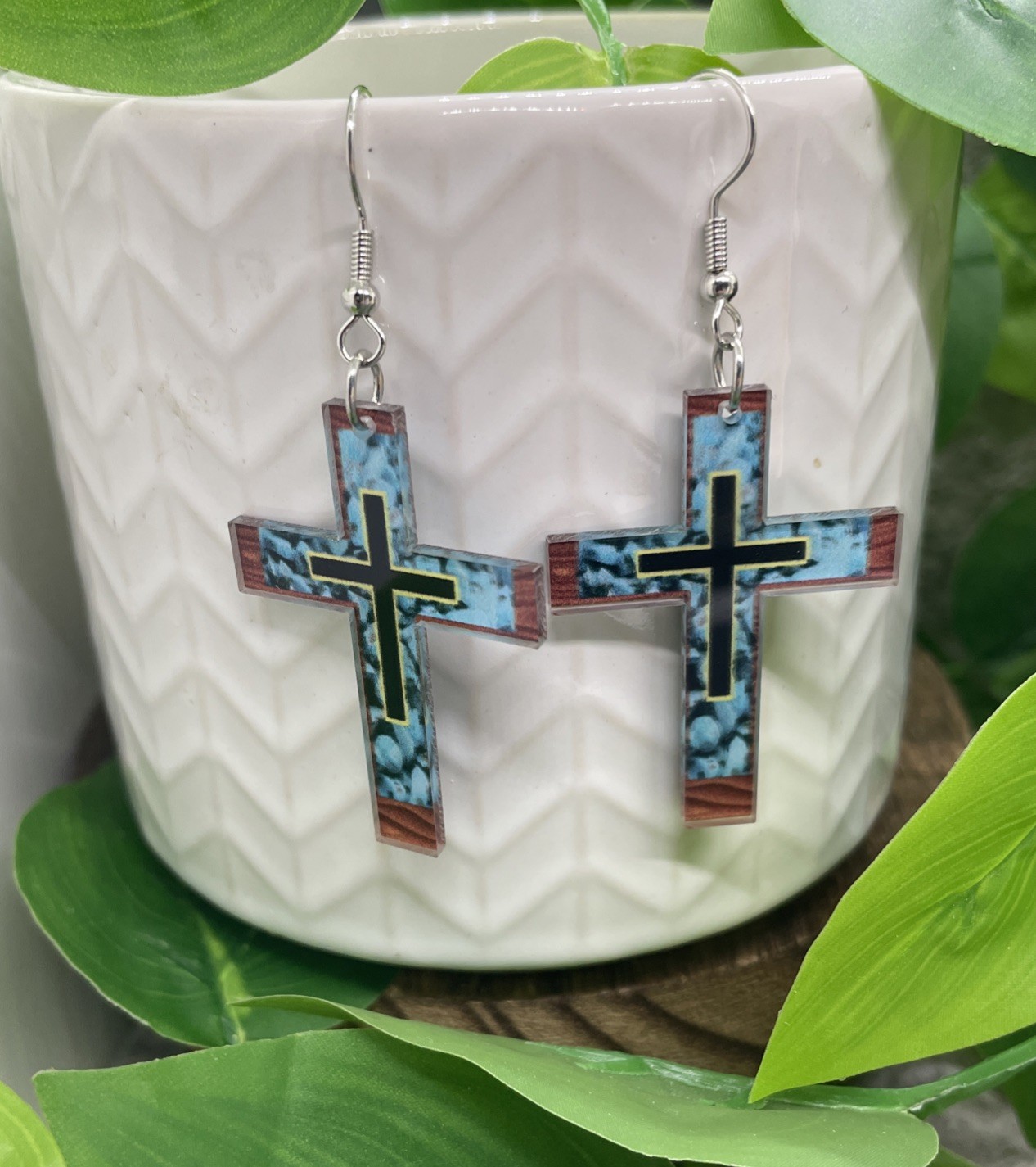 2 Silver-tone Acrylic Boho Cross Drop Dangle Earring Set New Free Ship B8222