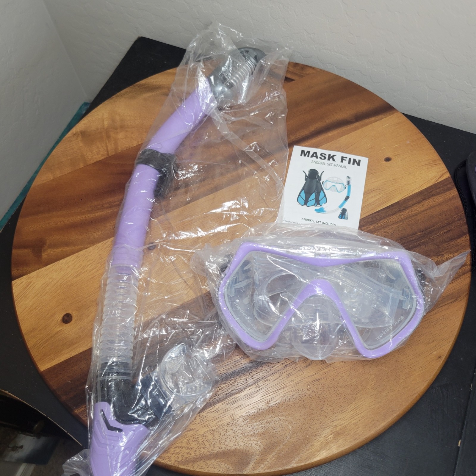 4 pcs Snorkel Gear Set for Men Women Diving Mask Dry Top Snorkel Fins Purple S/M