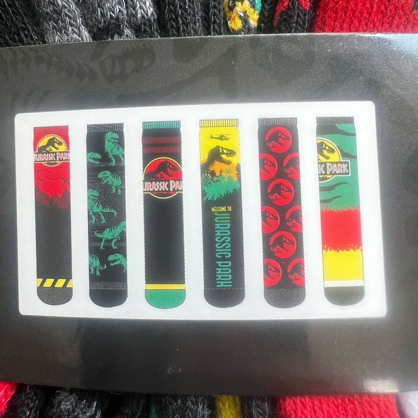 NWT Jurassic Park Men's 6 Pack Novelty Crew Socks Different Designs Size 6-12