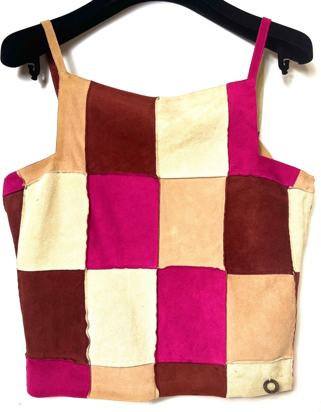 Chanel Vintage 2000 Pink Patch Leather Crop Top 36 38 4 6 Tank Blouse Shirt S M