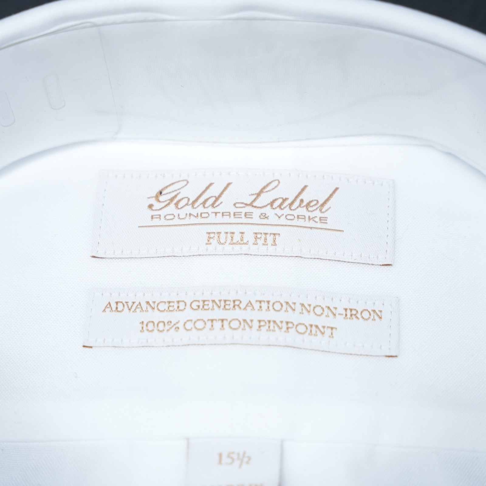как выглядит Roundtree Yorke Gold Label Short Sleeve M 15.5" FULL FIT White Non Iron NWT фото