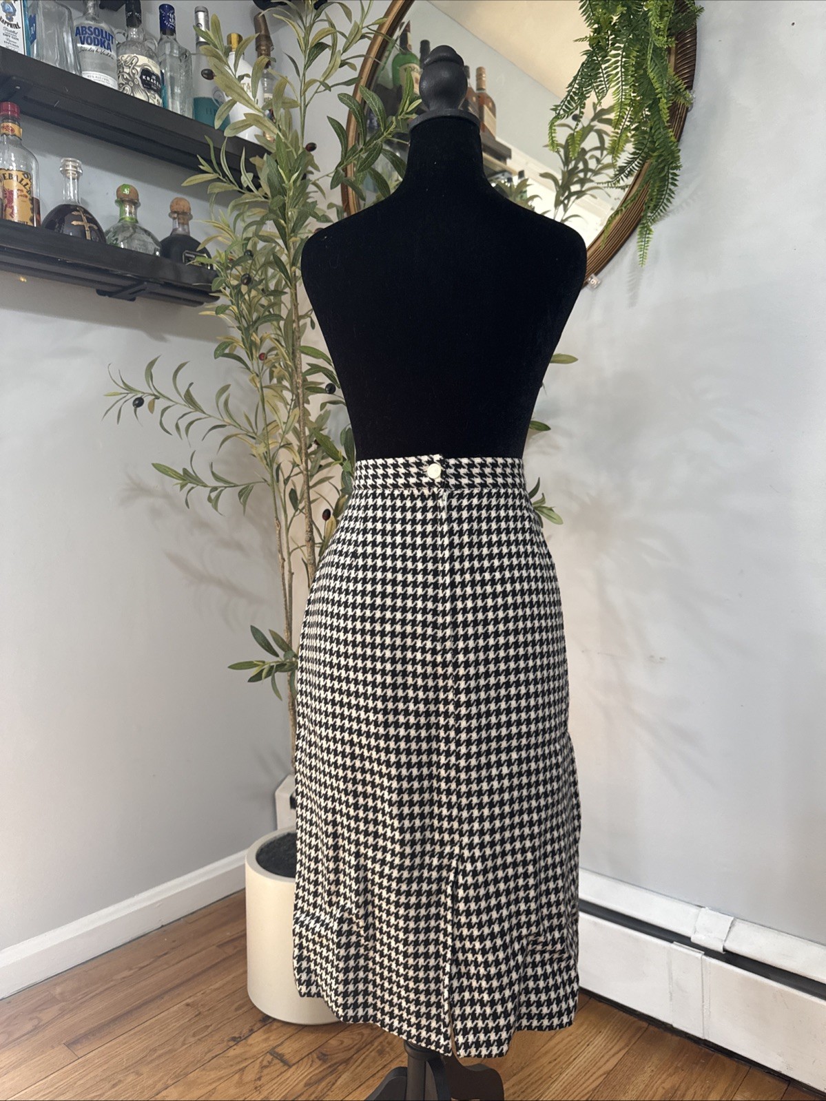Vtg Houndstooth Pleated Midi Skirt 100 Wool Women s Sz 14 Academia 80s Tailor