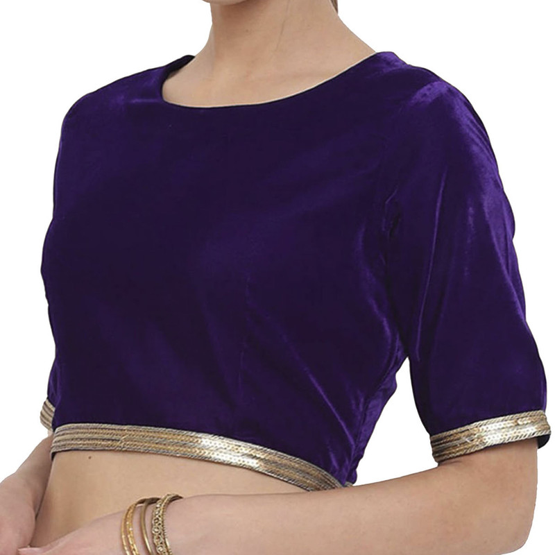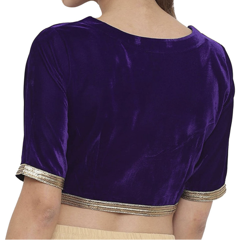 Women's Velvet Sari Blouse with lace Designer Readymade Stitched Choli Crop Top