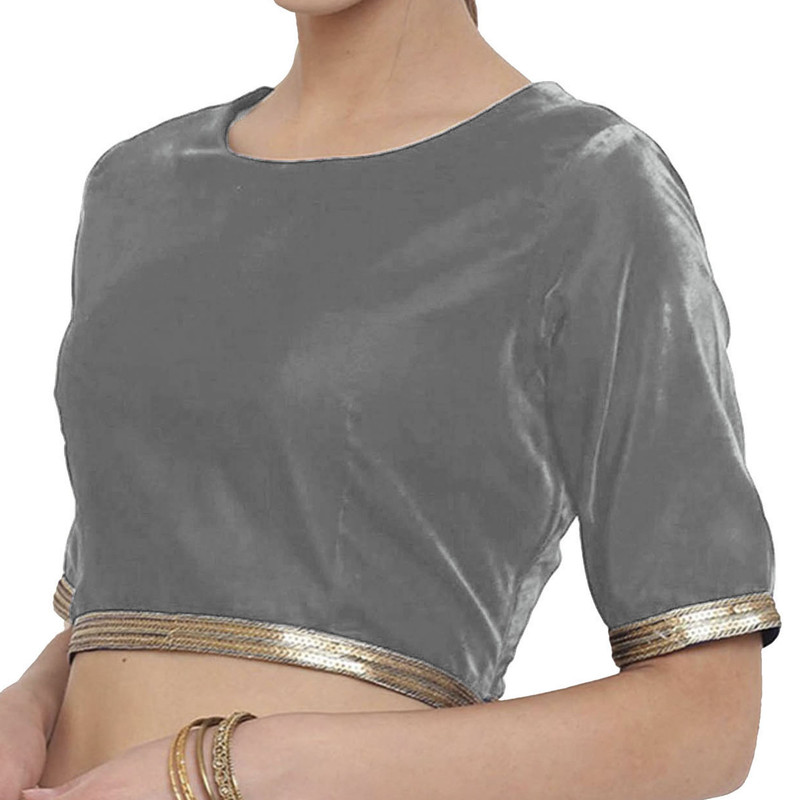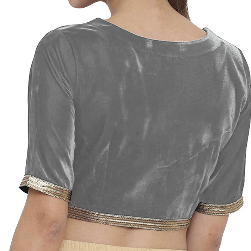 Women's Velvet Sari Blouse with lace Designer Readymade Stitched Choli Crop Top