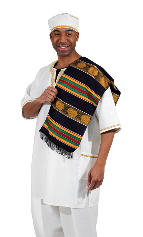 African Made Kente Scarf/Table Runner w/Black Fringes. 12X 45 GHANA W. AFRICA.