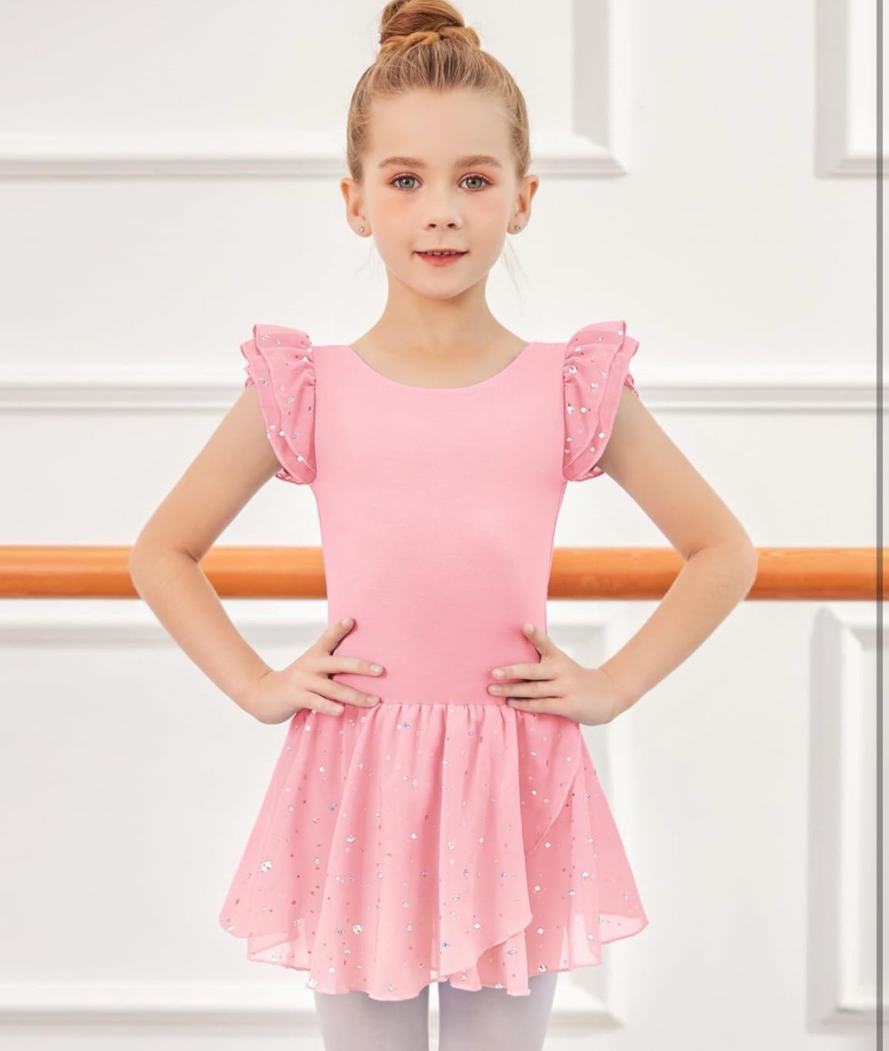 как выглядит Girls Ruffle Sleeve Ballet Dance Dress Tutu Skirted Leotard, 8-9 Years, Balle... фото