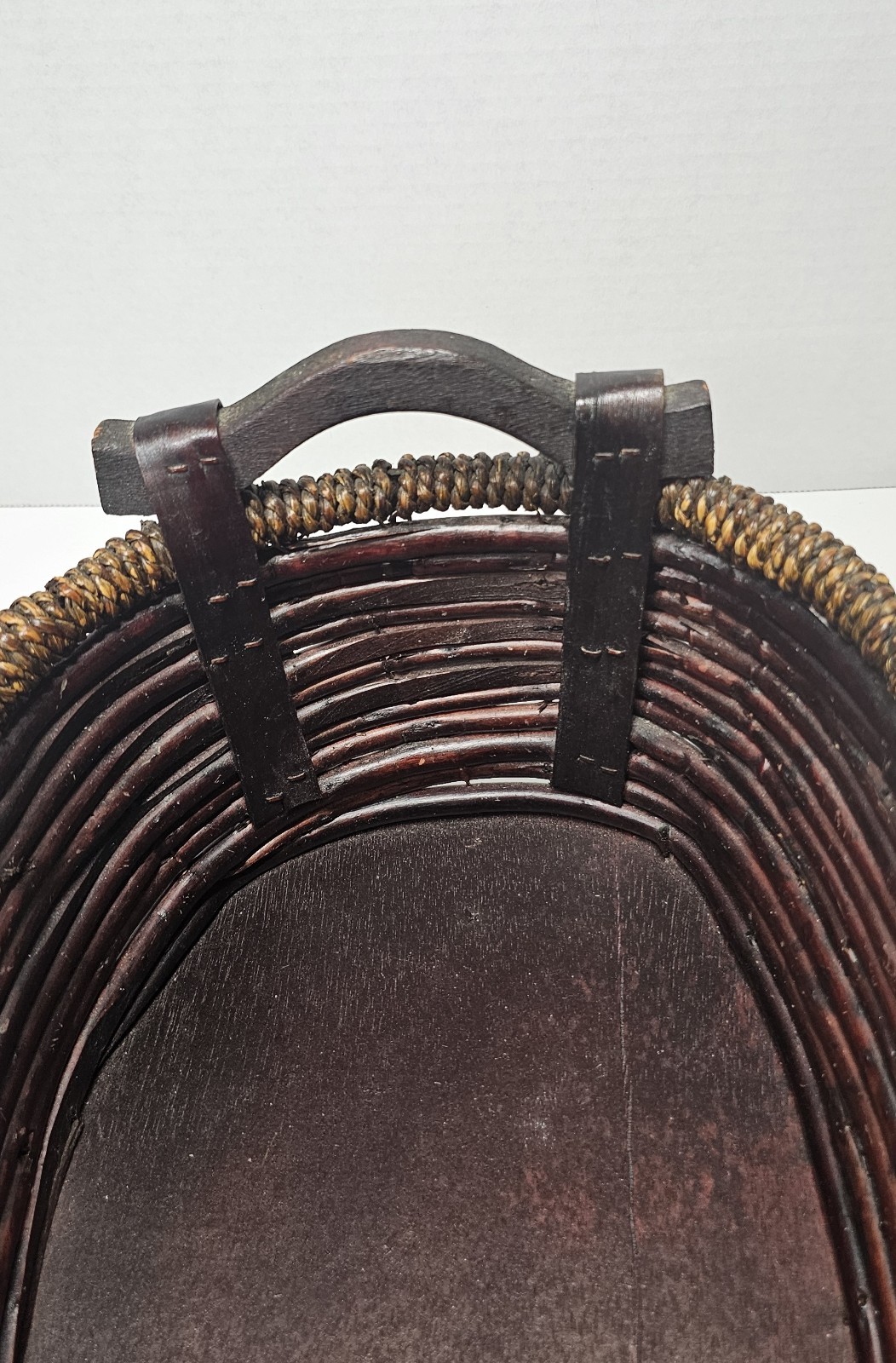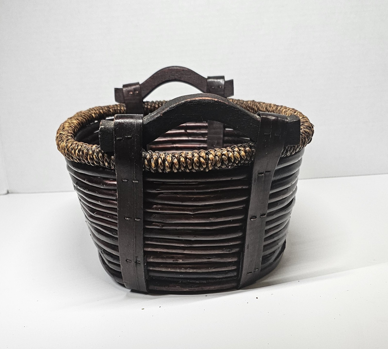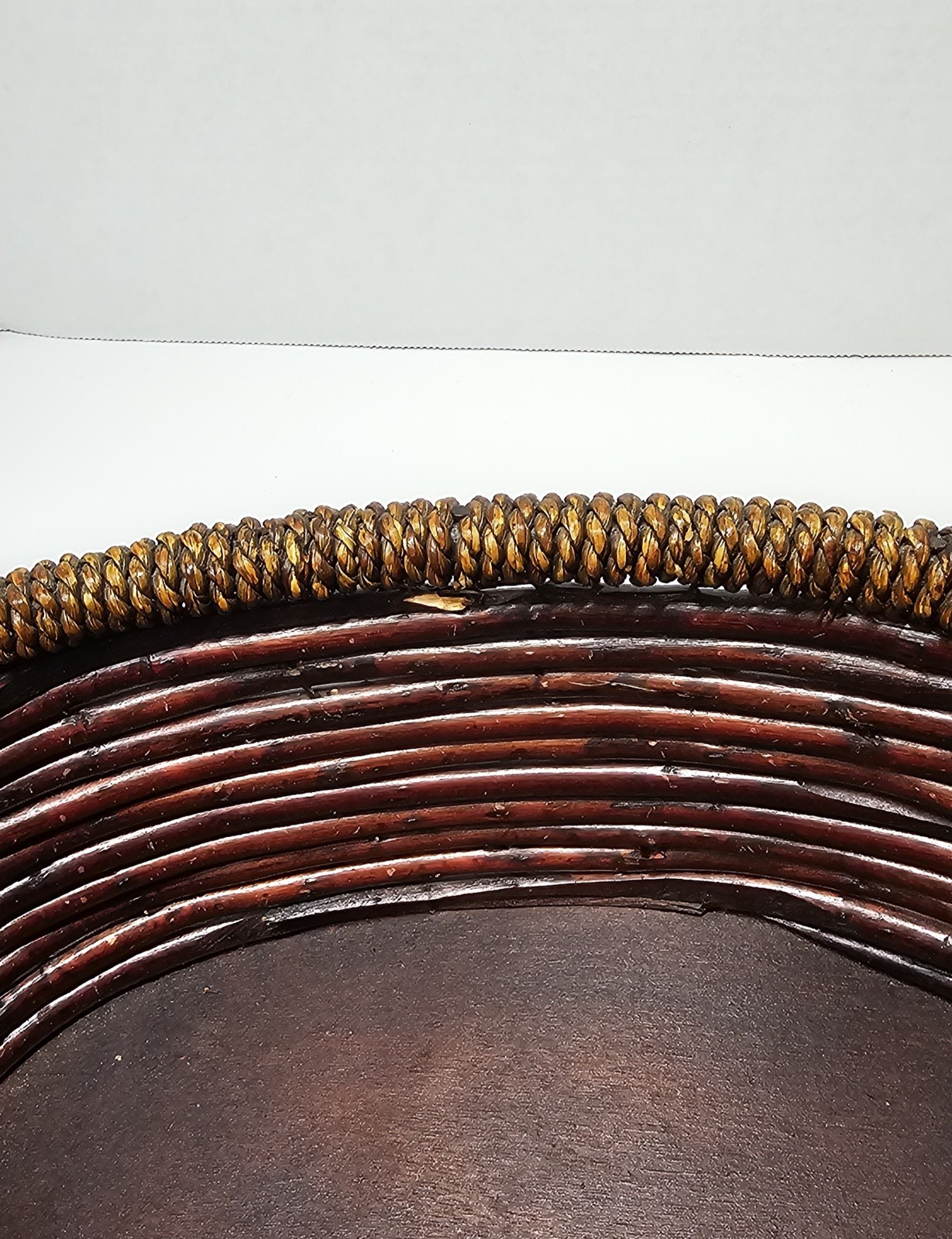 Oval Brown Rattan Bamboo Woven Basket Wood Handles Farmhouse Country Home Decor