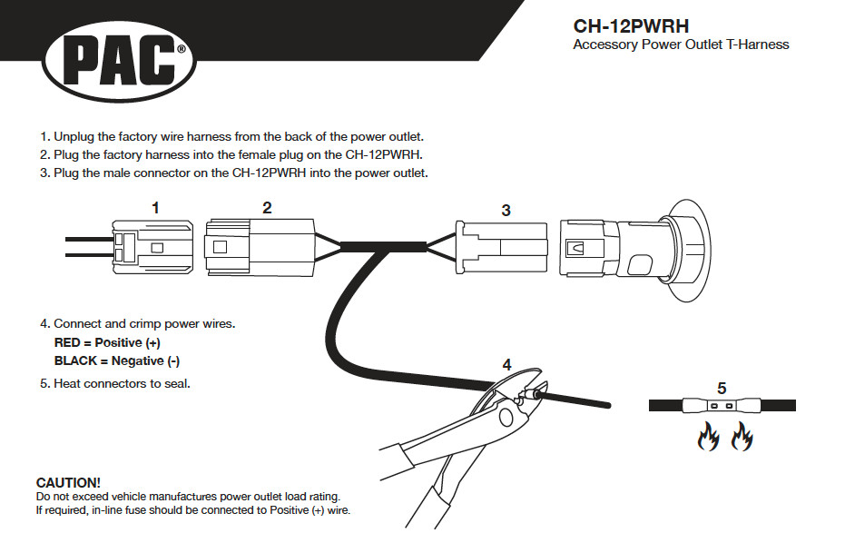 PAC CH-12PWRH Accessory Power Outlet T-Harness Fits Chrysler/Jeep. No Cutting