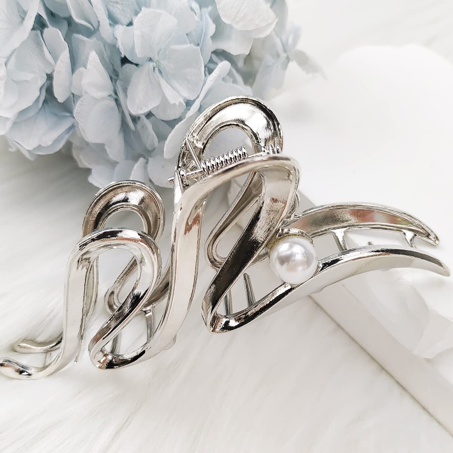 как выглядит Metal Snake Claw Hair Clips - Non-Slip Serpentine Barrettes with Pearls for T... фото