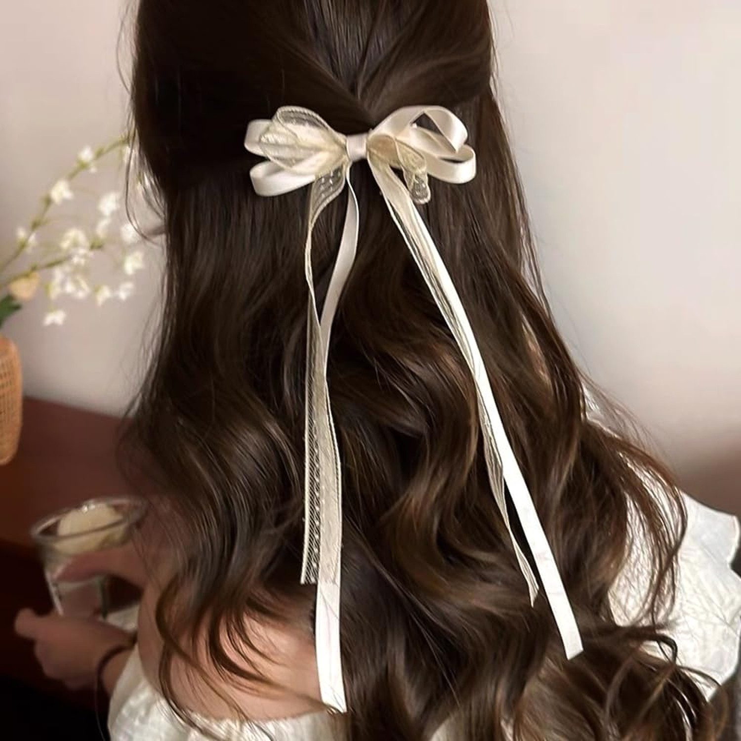 как выглядит 6Pcs Lace Hair Bow Clips for Women, Cute Barrettes with Long Tails, Metal All... фото