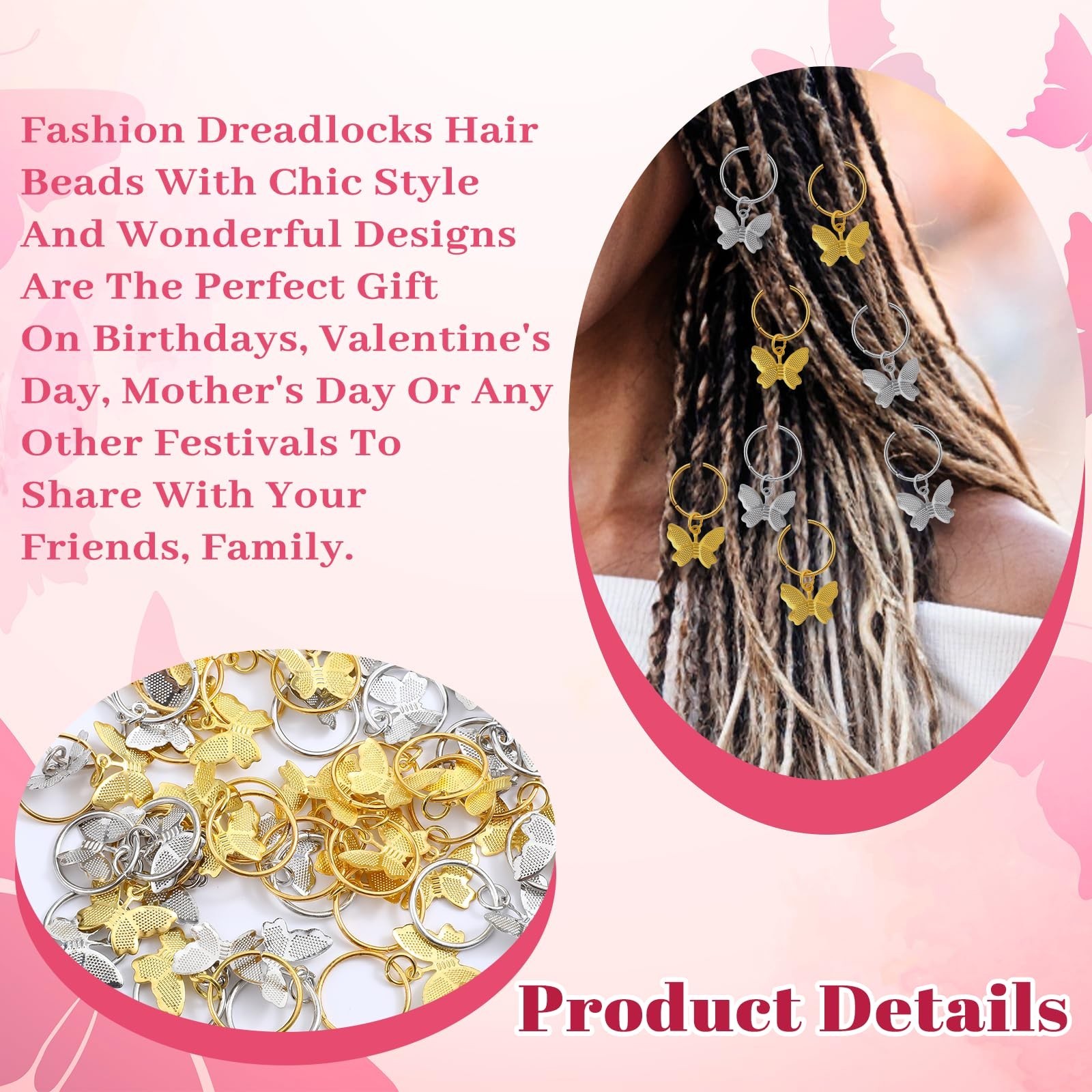 40Pcs Hair Cuffs for Braids Gold Silver Butterfly Hair Jewelry for Braid Ac...