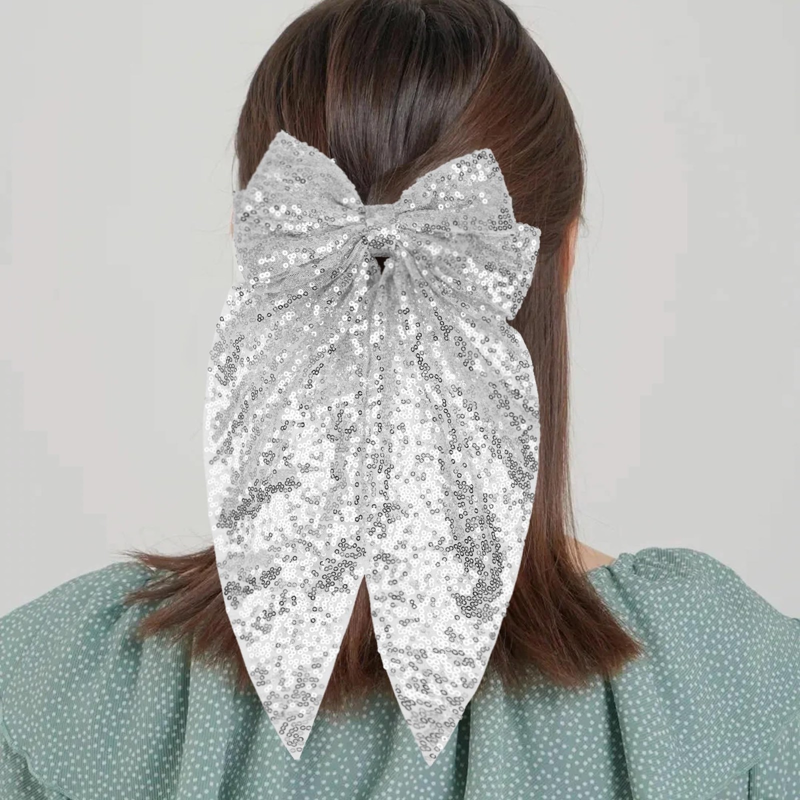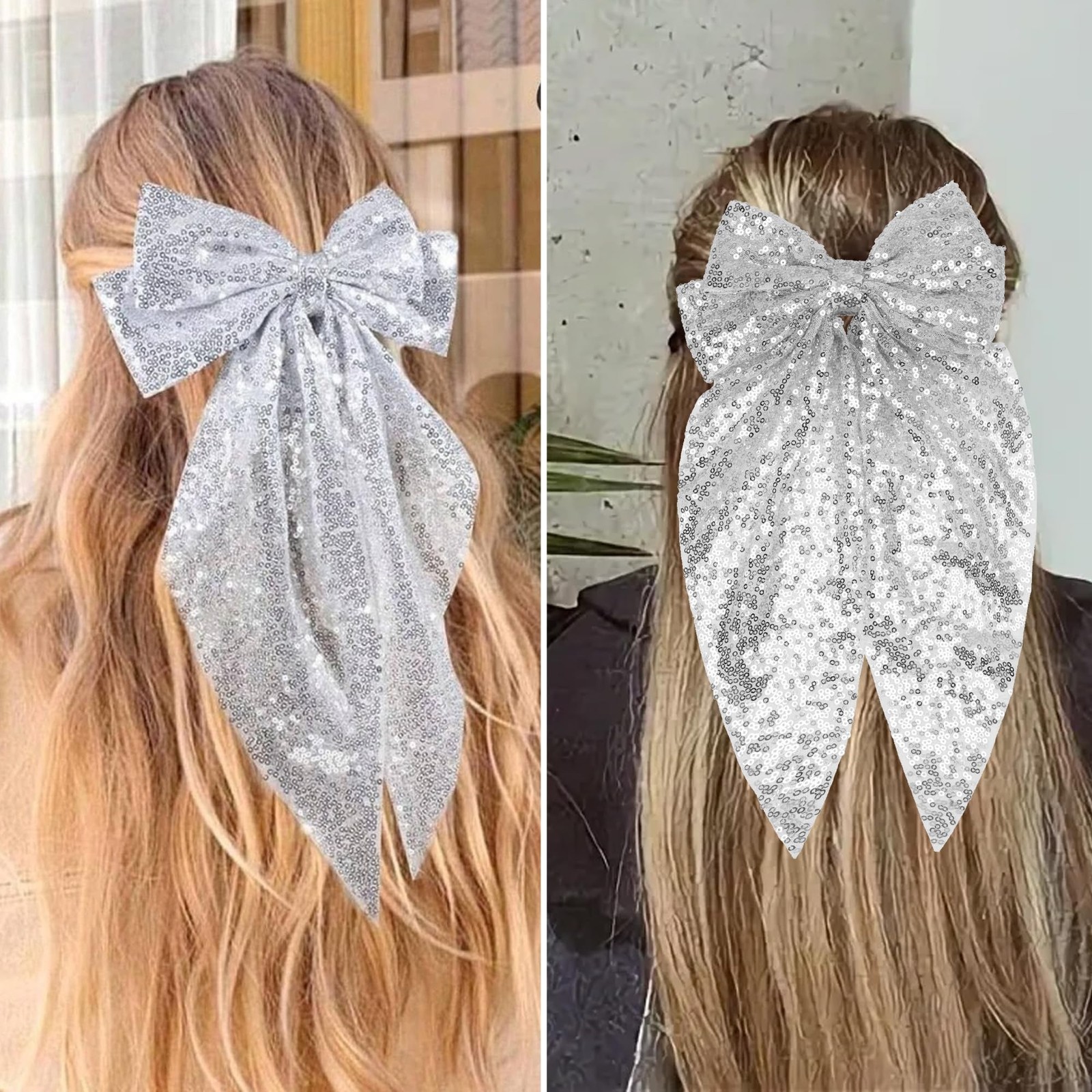 как выглядит Hair Bows for Women, 20x38cm Large Hair Bows Clip Black and Silver, Cute Hair... фото