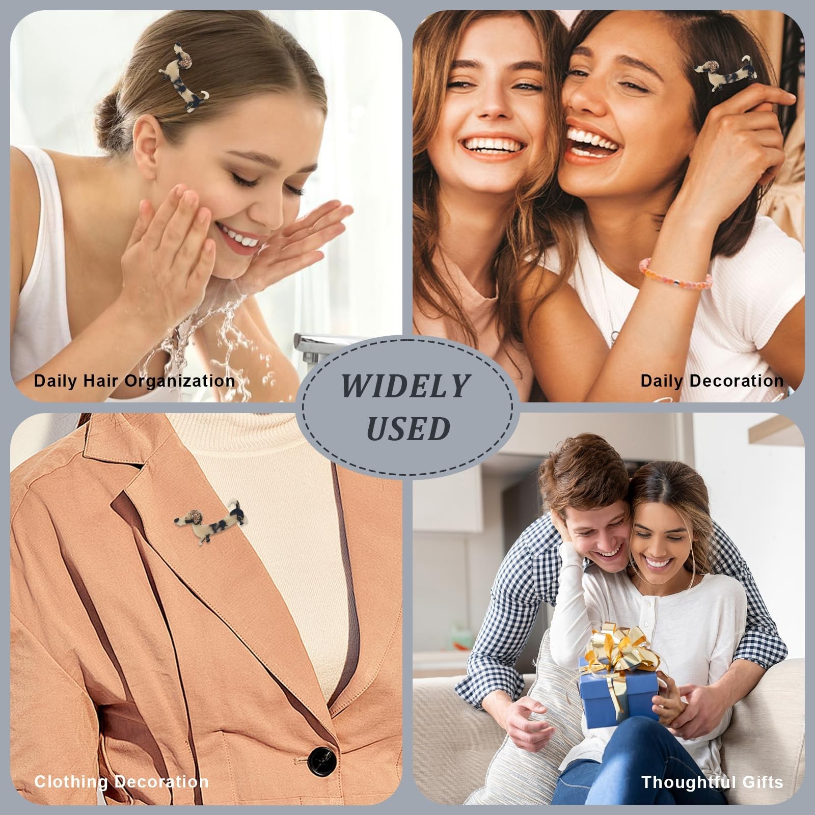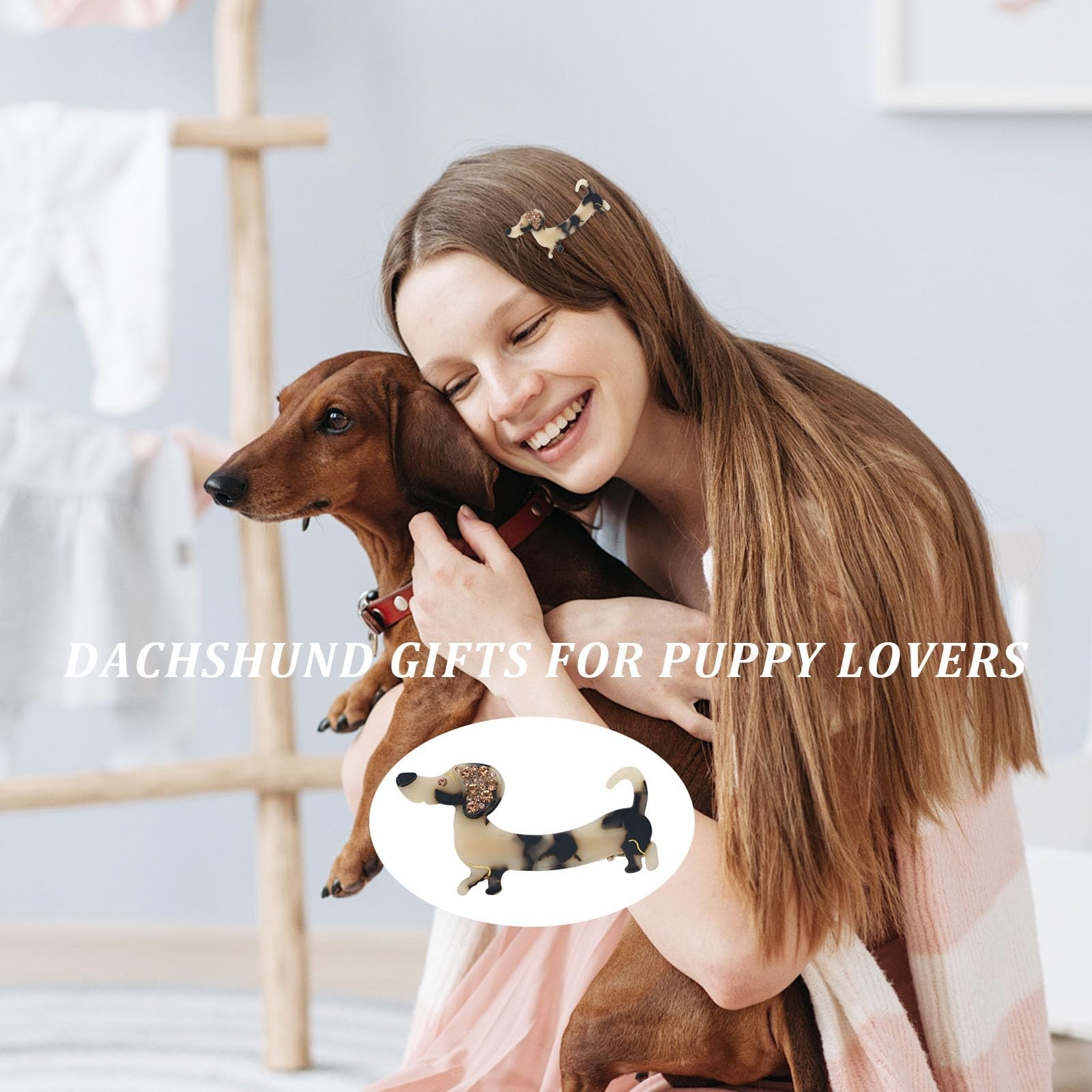 Cute Dachshund Dog Hair Clips for Women, Acetate Rhinestone Hair Barrettes, N...