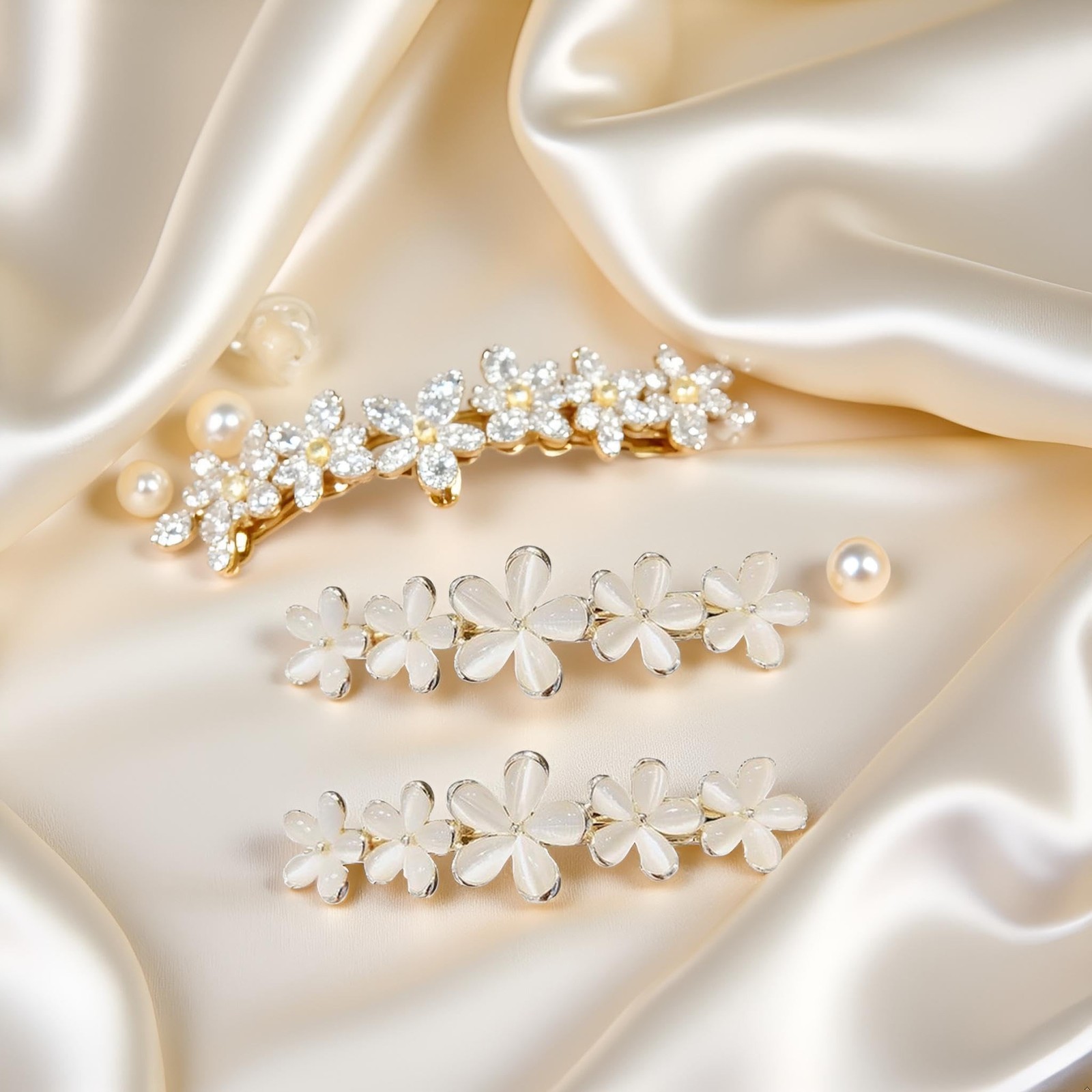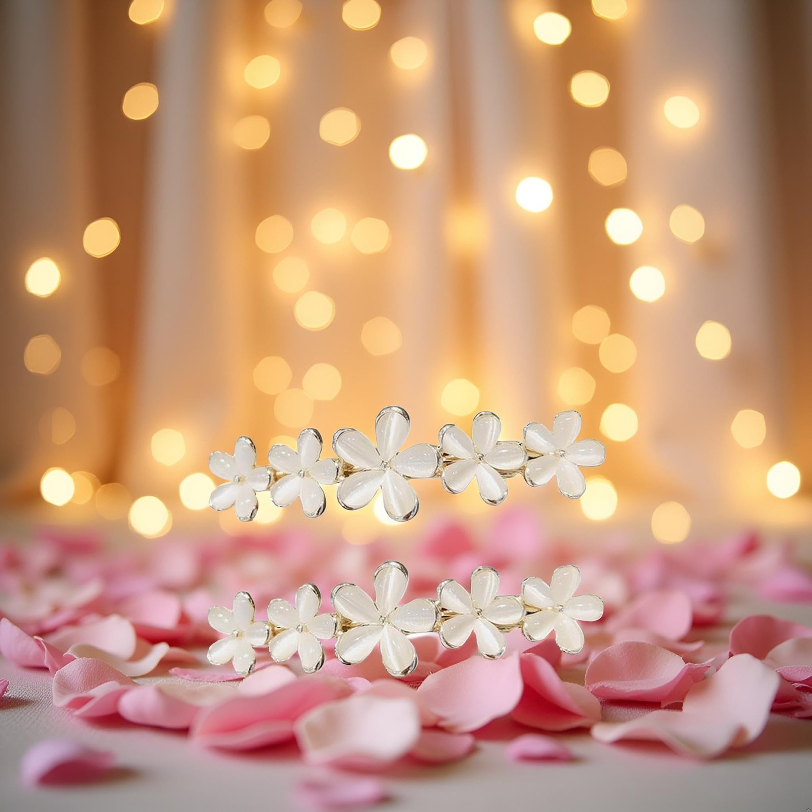 2Pcs Golden Flower Opal Hair Clips Gold Sparkly Wedding Barrettes Fancy Hair ...