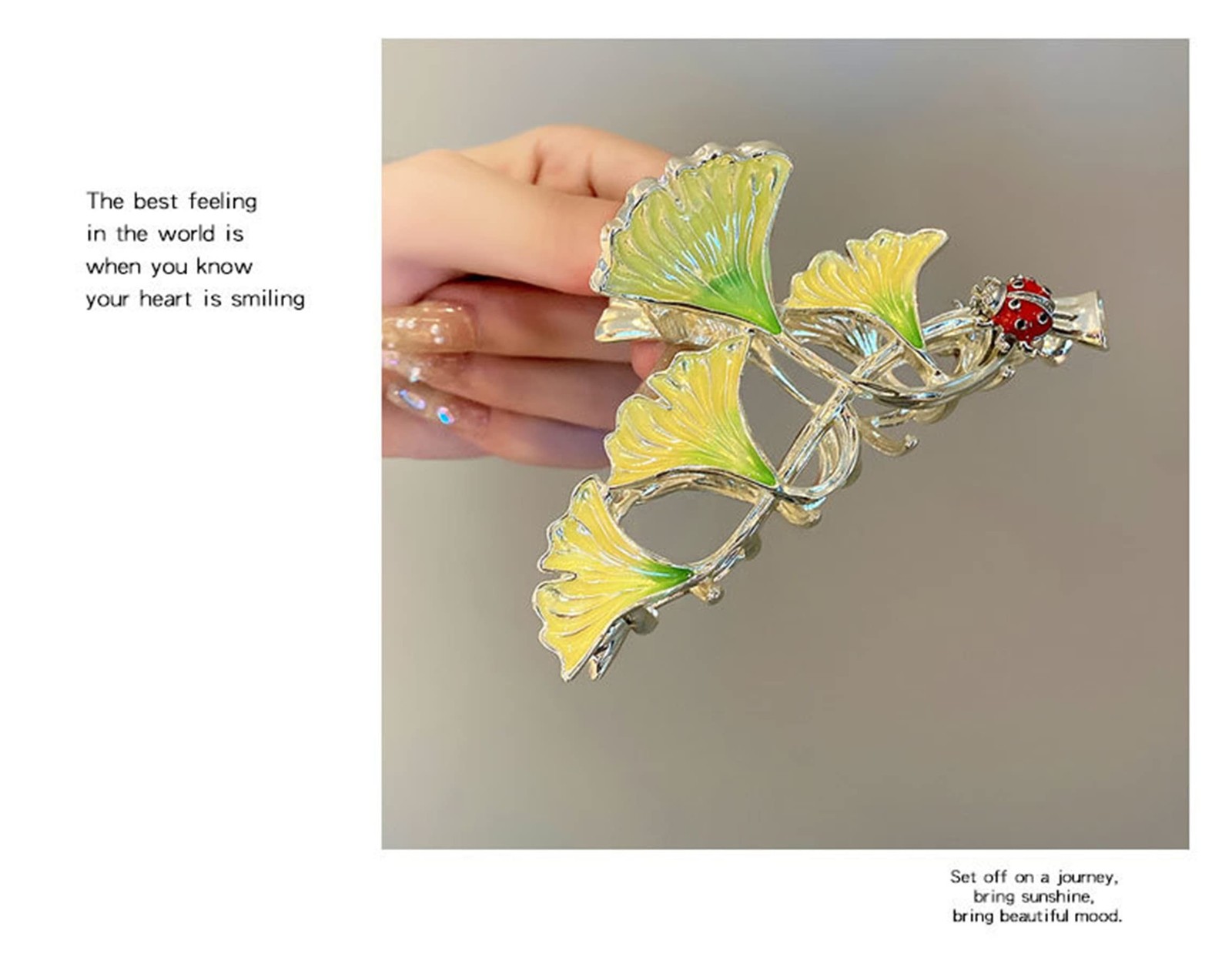 2PCS Peony and Ginkgo Metal Hair Claw Clips Flower Hair Jaw Clips Hair Catch ...