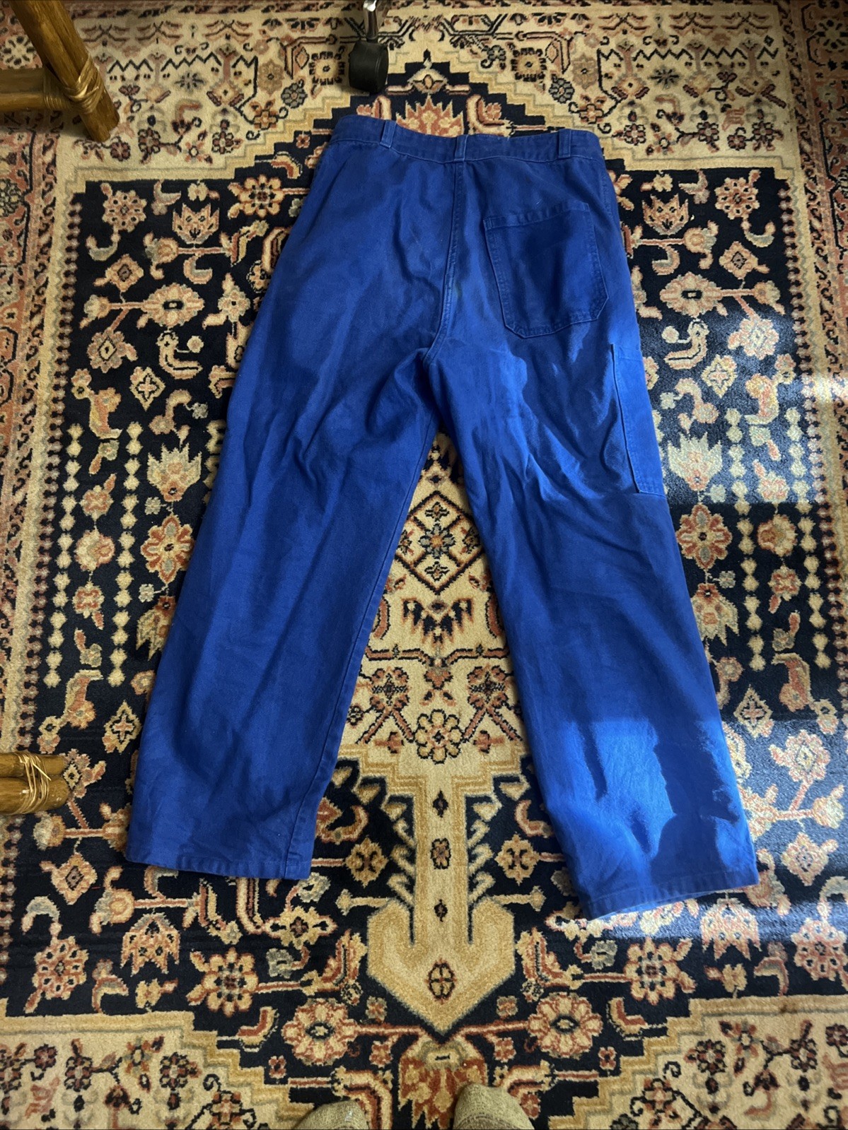 Vintage French Distressed Blue Cotton Workwear Chore Faded Pants 30Wx28L