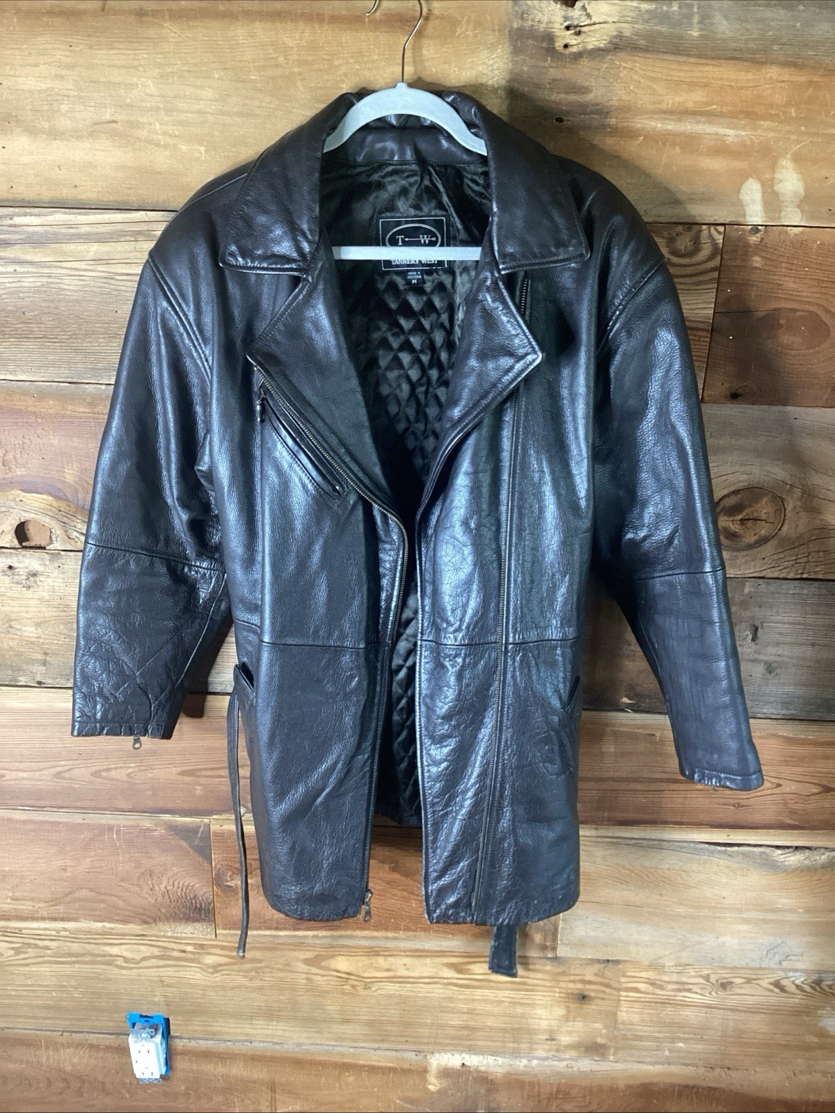 Tannery West 90s Vintage Brown Belted Long-Line Leather Motorcycle Coat Med