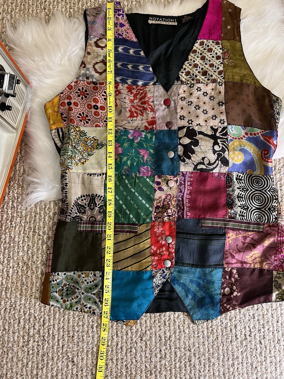 как выглядит Notations Pure Silk Patchwork Vest Size M NWOT Colorful Boho Hippie фото