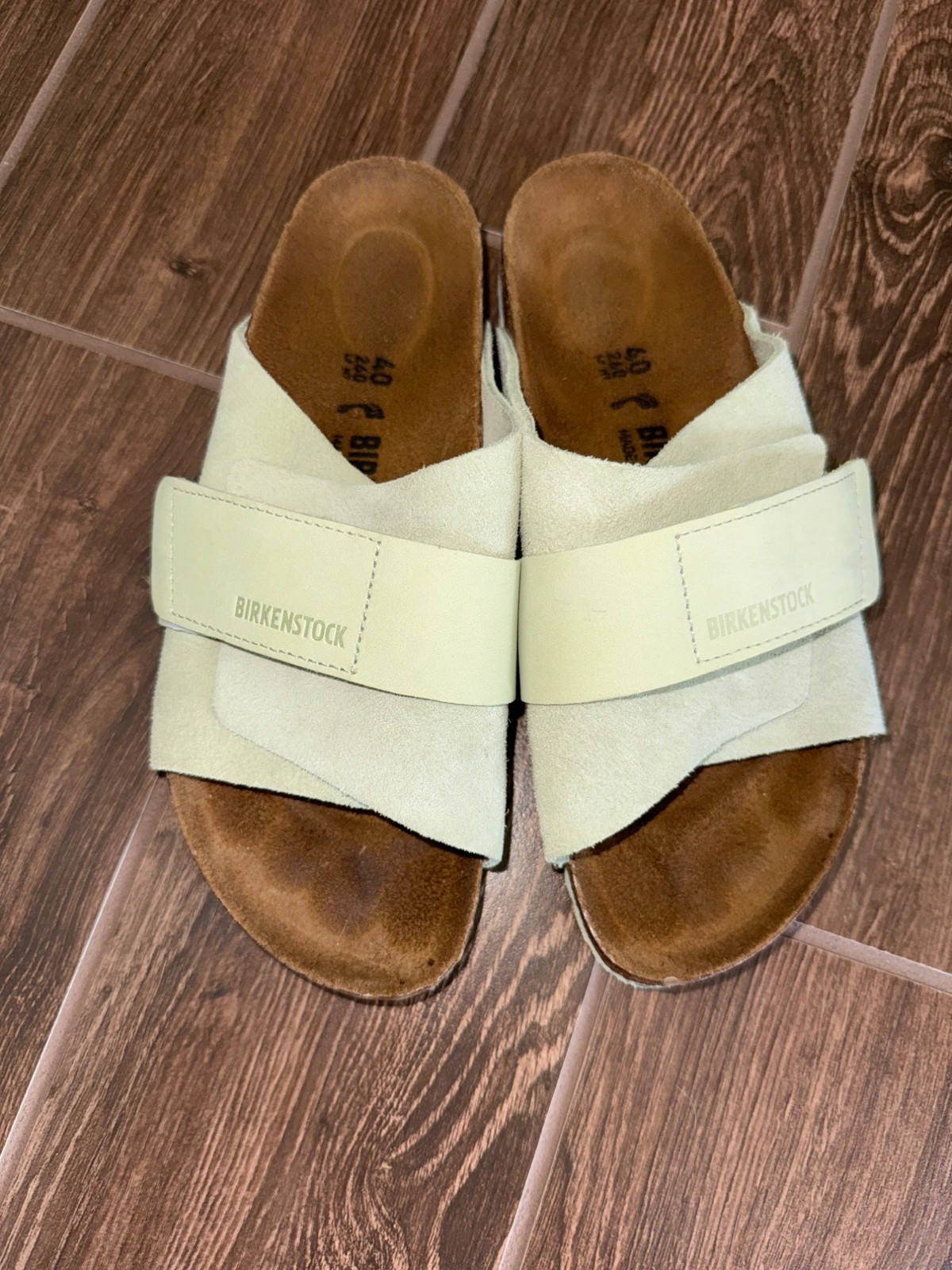 как выглядит Birkenstock sz 40 Kyoto Faded Lime Suede Excellent condition фото