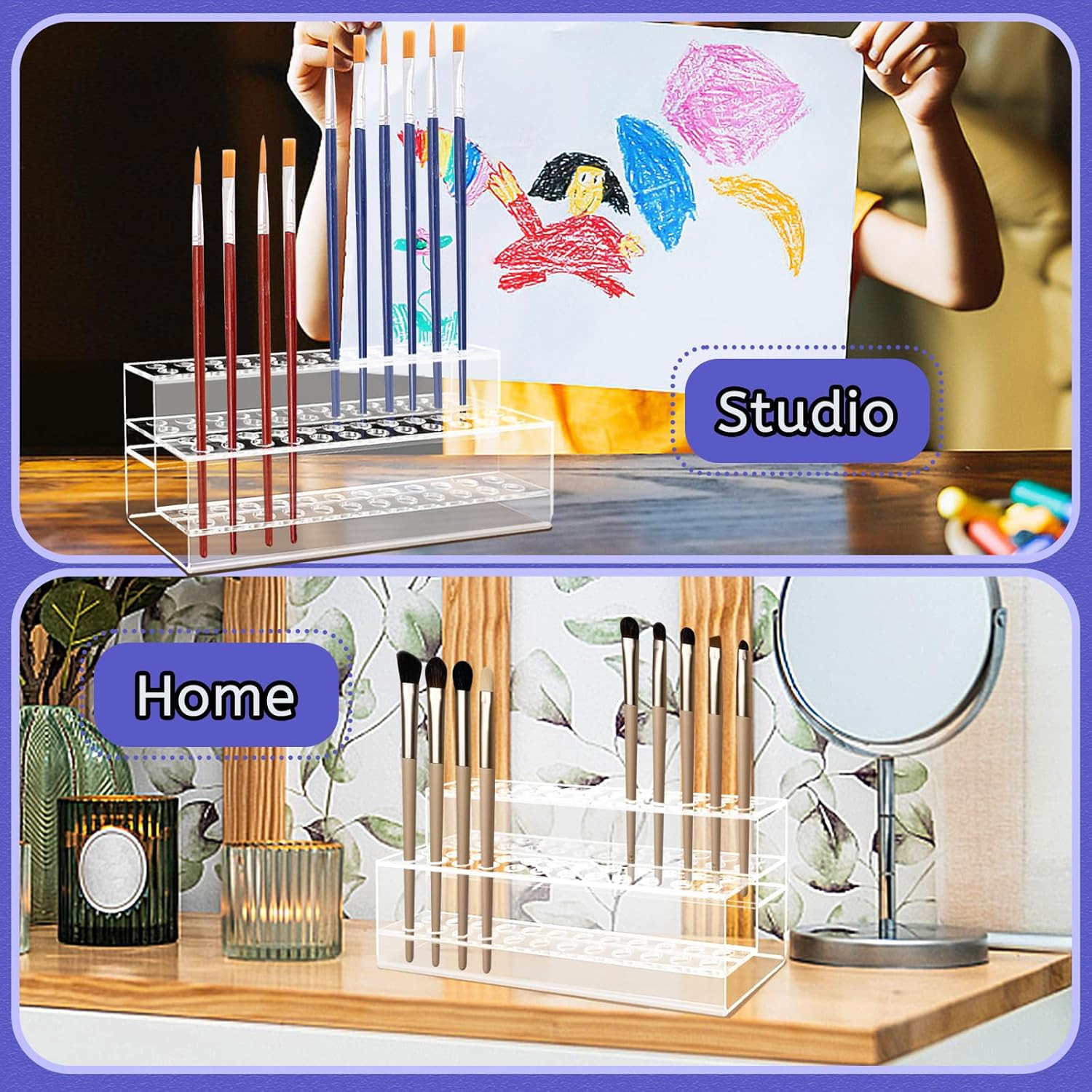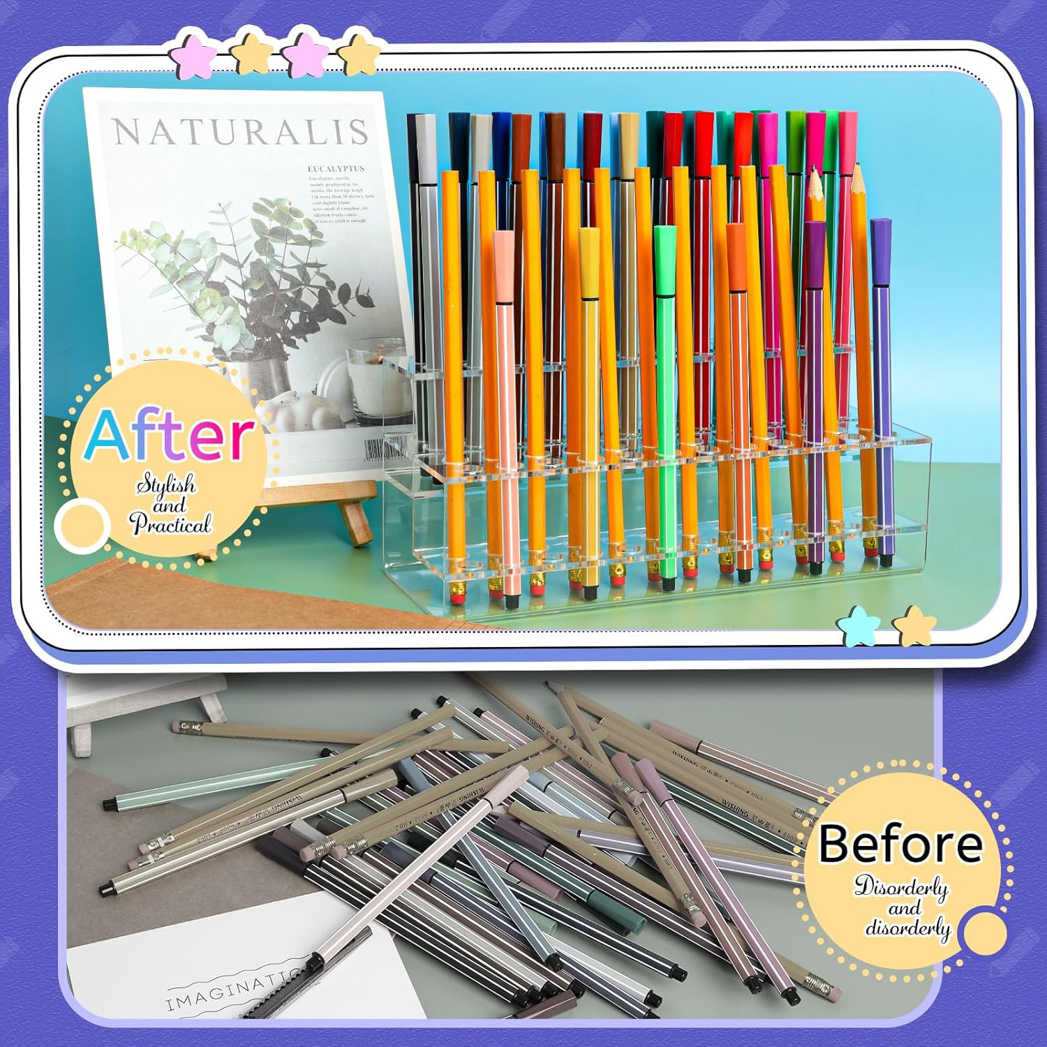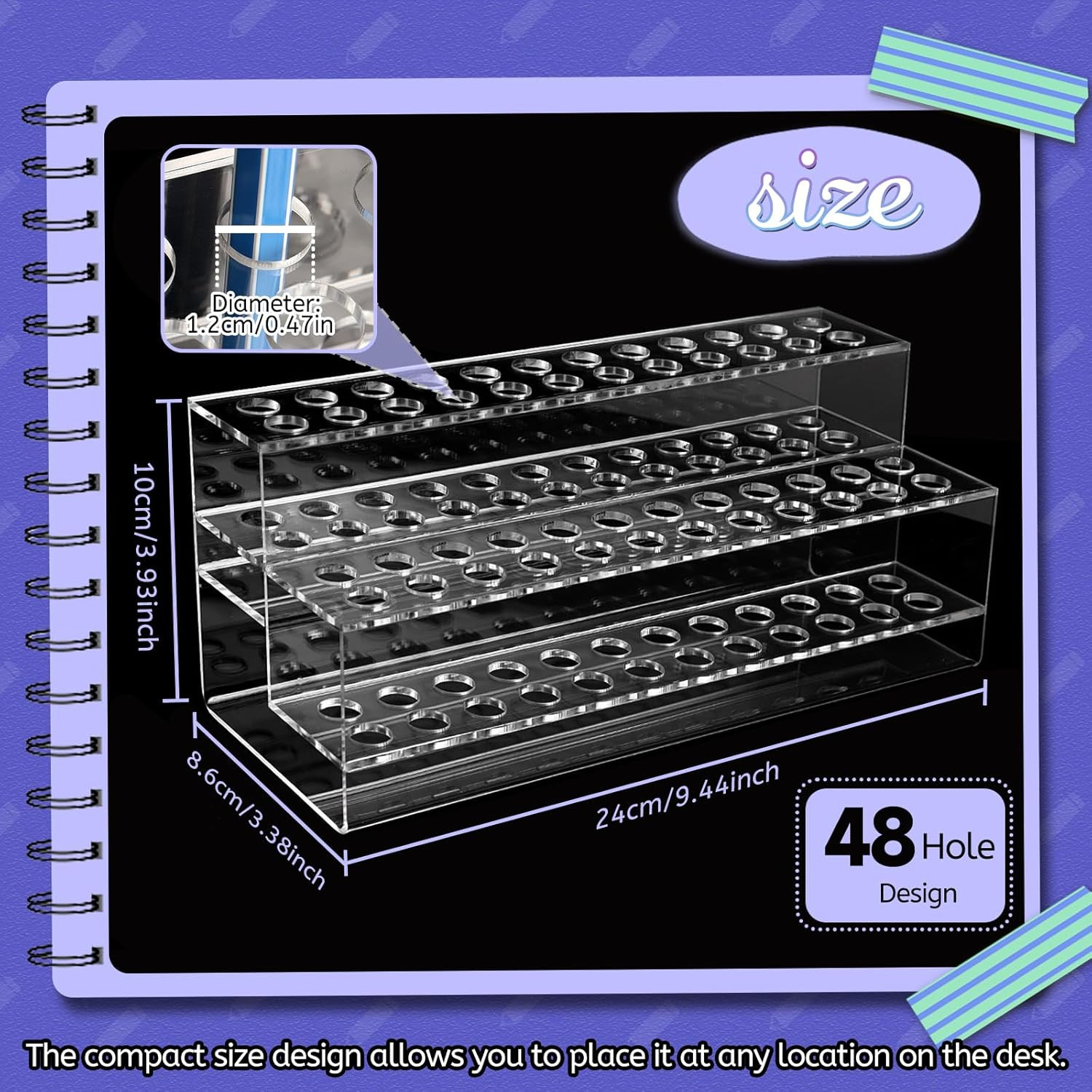 Acrylic Pen Holder, 2 Tier Pen Display Stand 48-Slots Pen Holder Clear Pen
