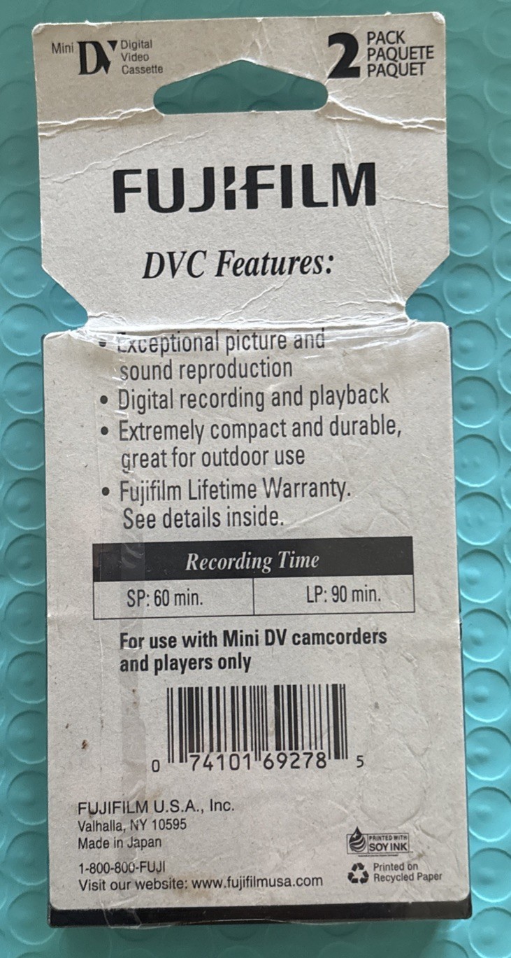 Brand New NOS Fujifilm DVC Mini DV Digital Video Cassettes 60 Min SP - 2 Pack