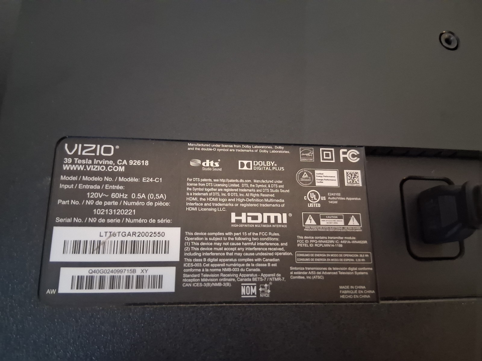 Vizio E24-C1 24 Full HD 1080p LED Flat Screen Smart Tv w/ Free Hdmi Cord