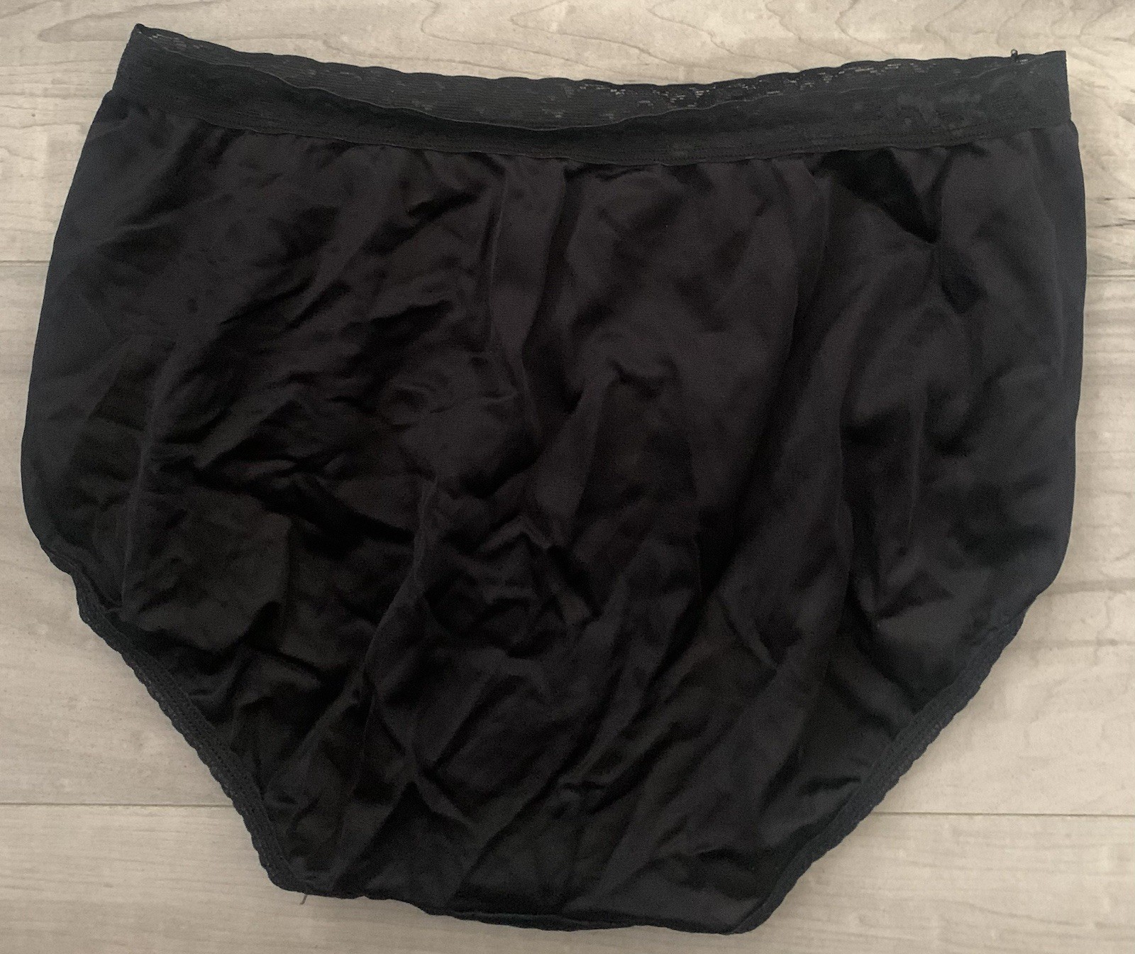 как выглядит Womens Hanes Nylon Granny Brief Panties Shiny Silky Black Sz 8 Xl Lace Waist фото