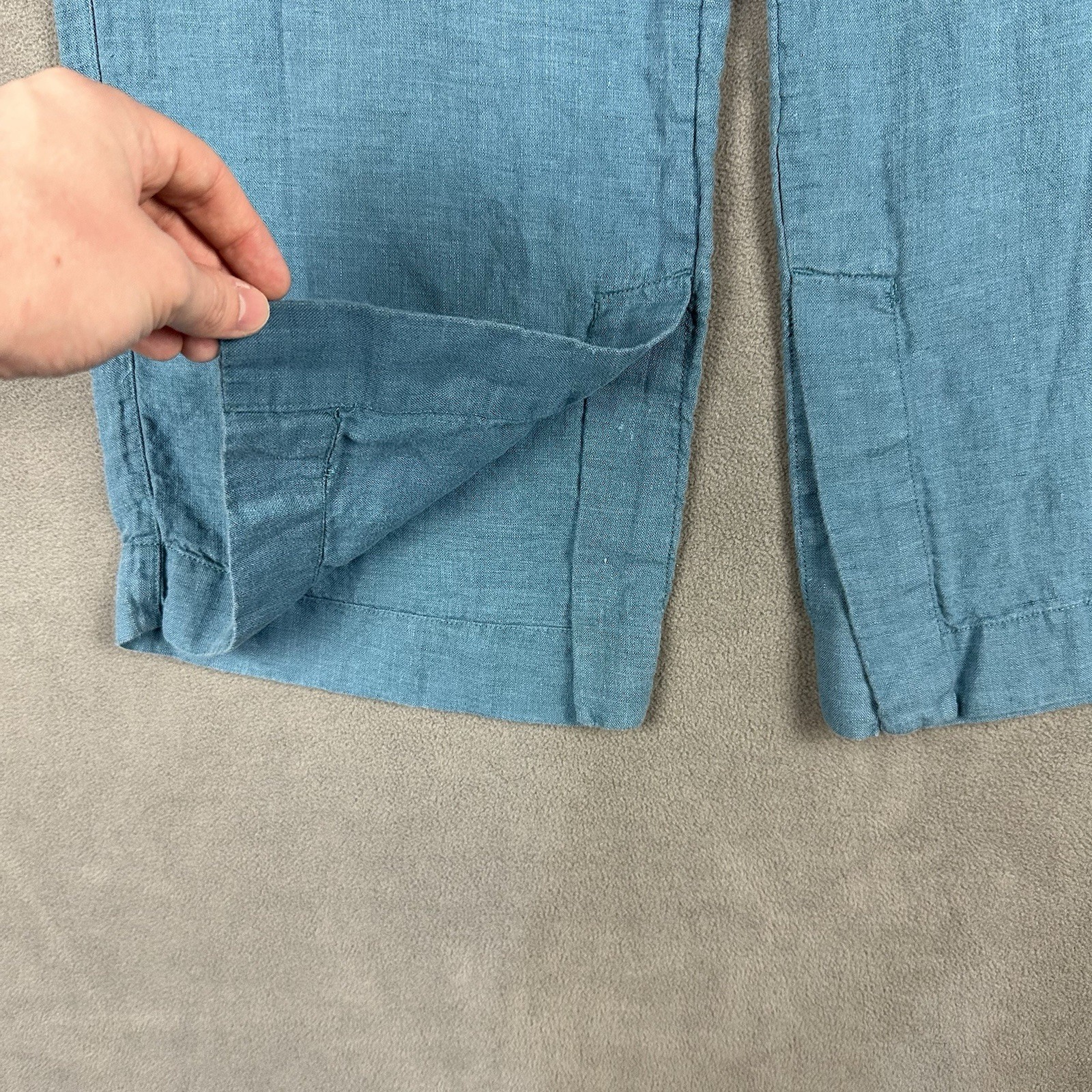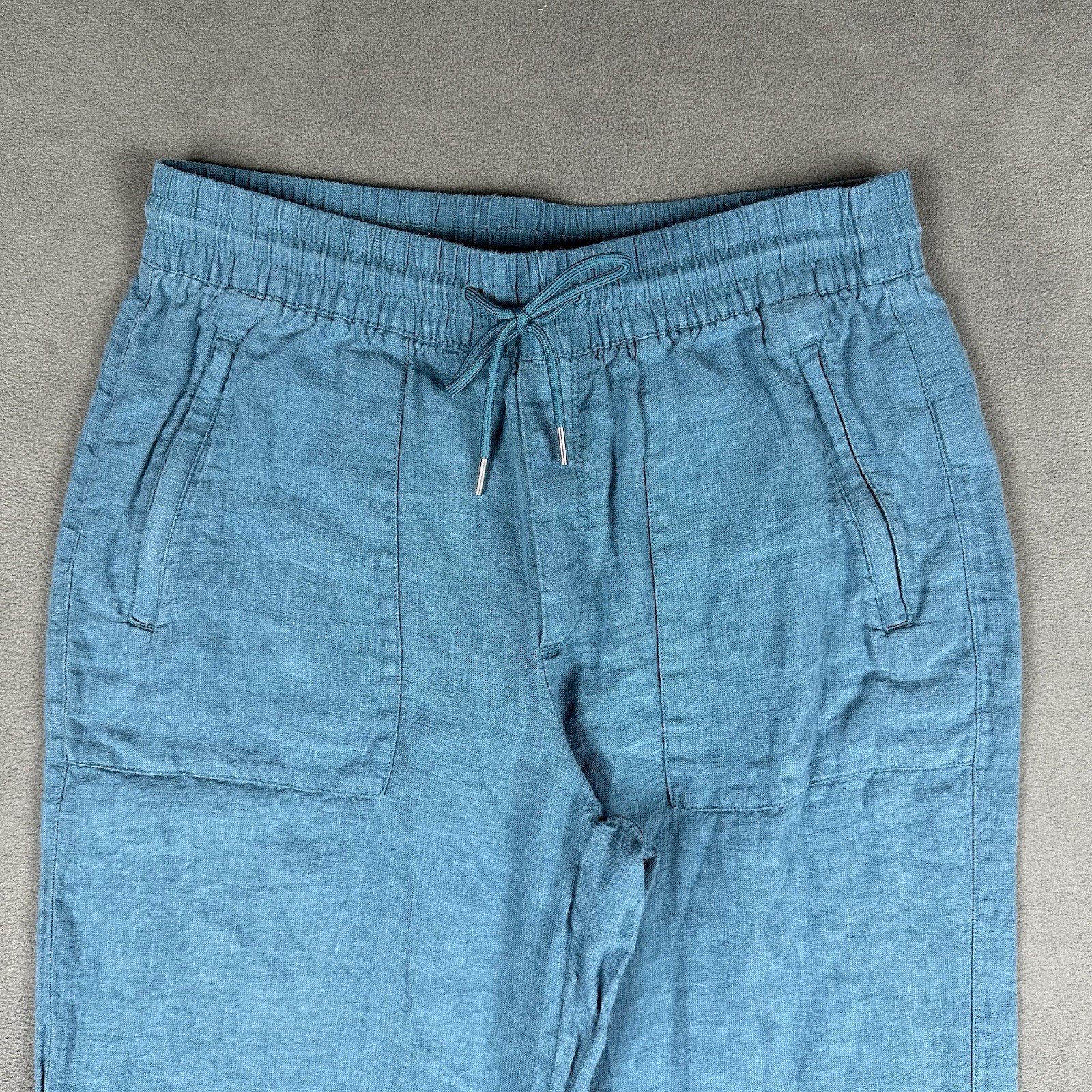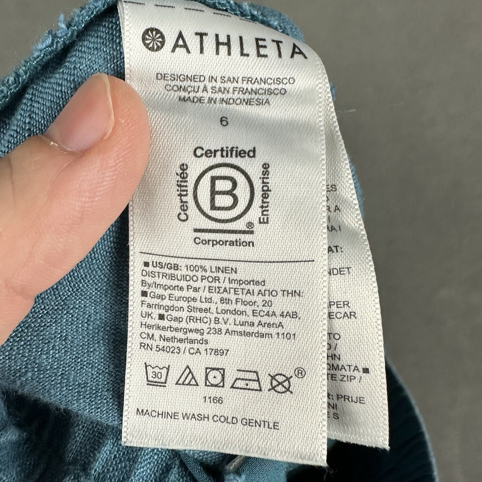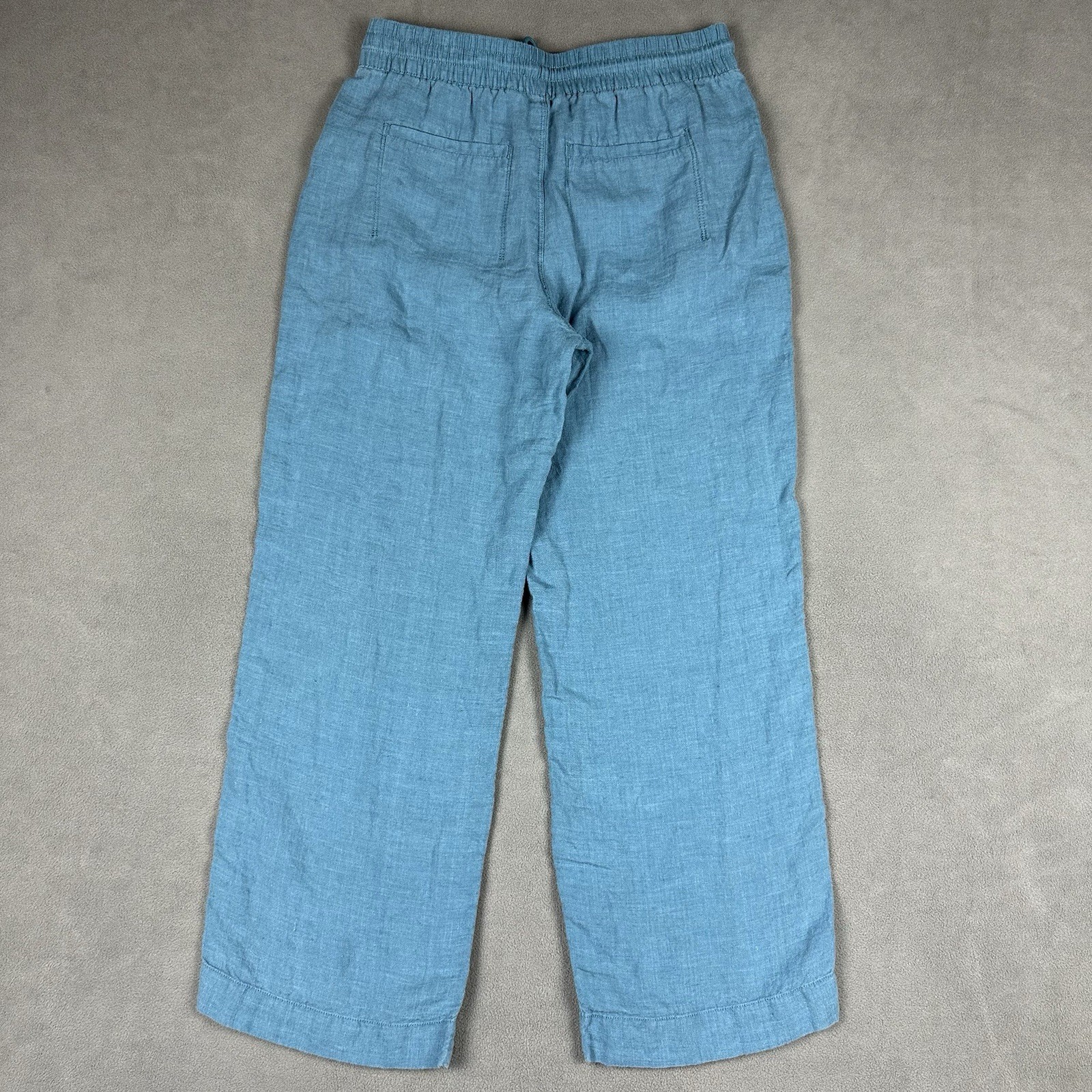 как выглядит Athleta Pants Women 6 Blue Retreat 100 Linen High Rise Wide Leg Pant Drawstring фото