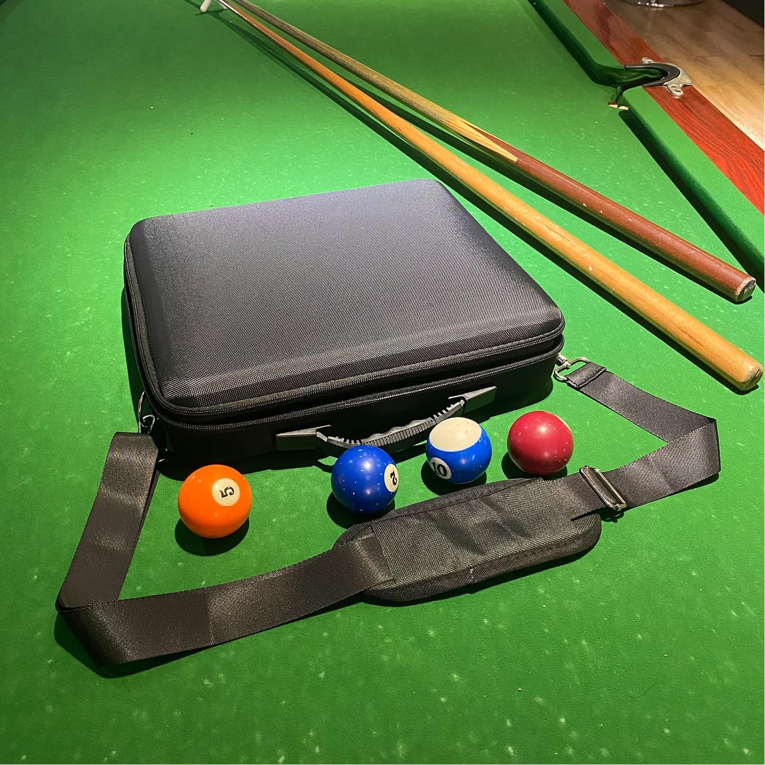 Pool Balls Carrying Case Hard Billiard Adjustable Shoulder Strap EVA Travel One