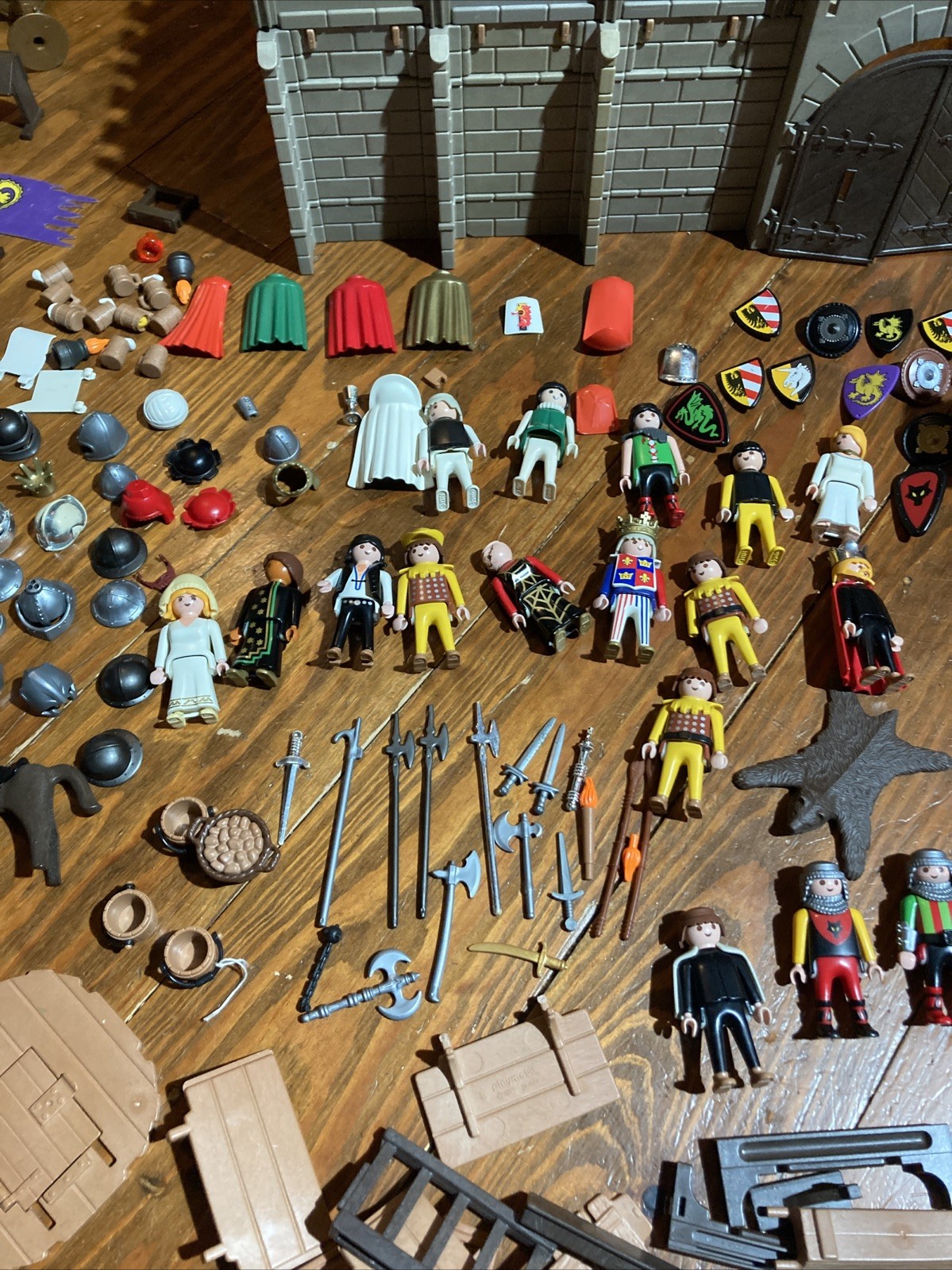 Vintage 1977 Playmobil 3450 Castle w Knights Horses Forestmen Weapons More