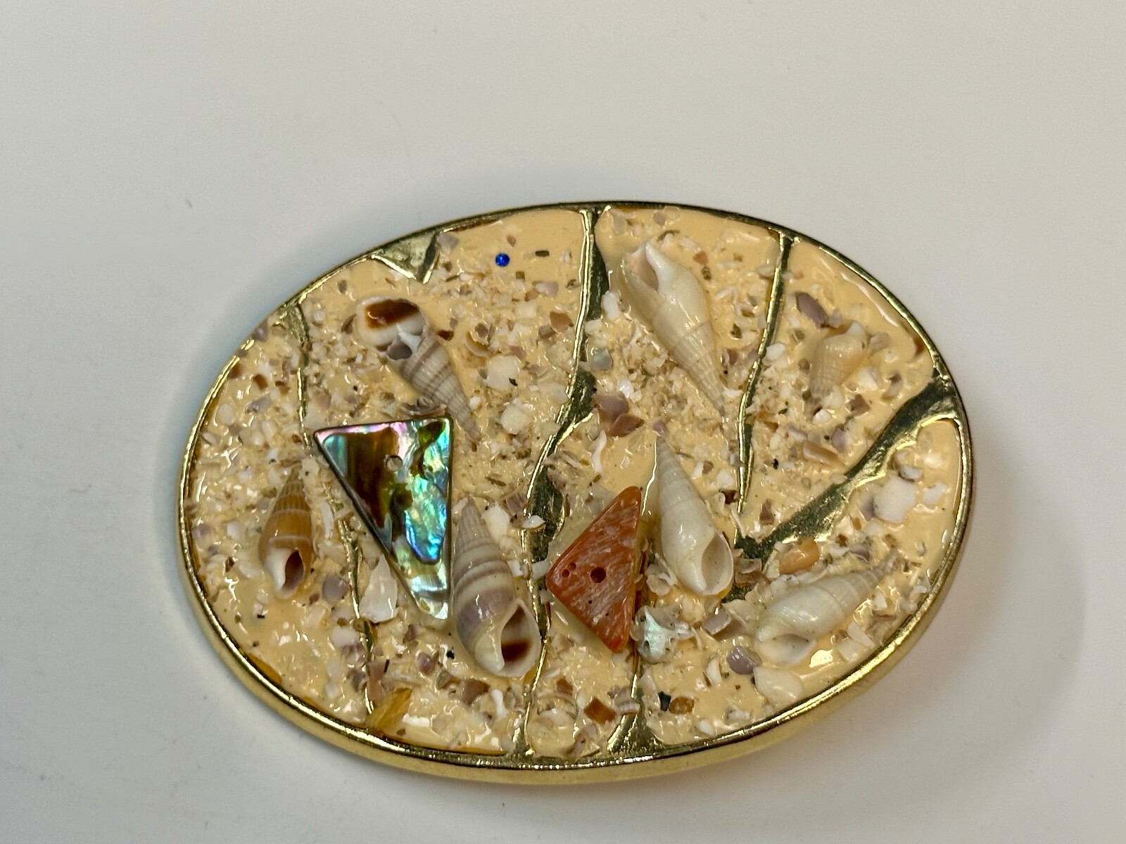 Nautical Theme Mixed Material sea shell's coral sand on gold tone Belt Buckle