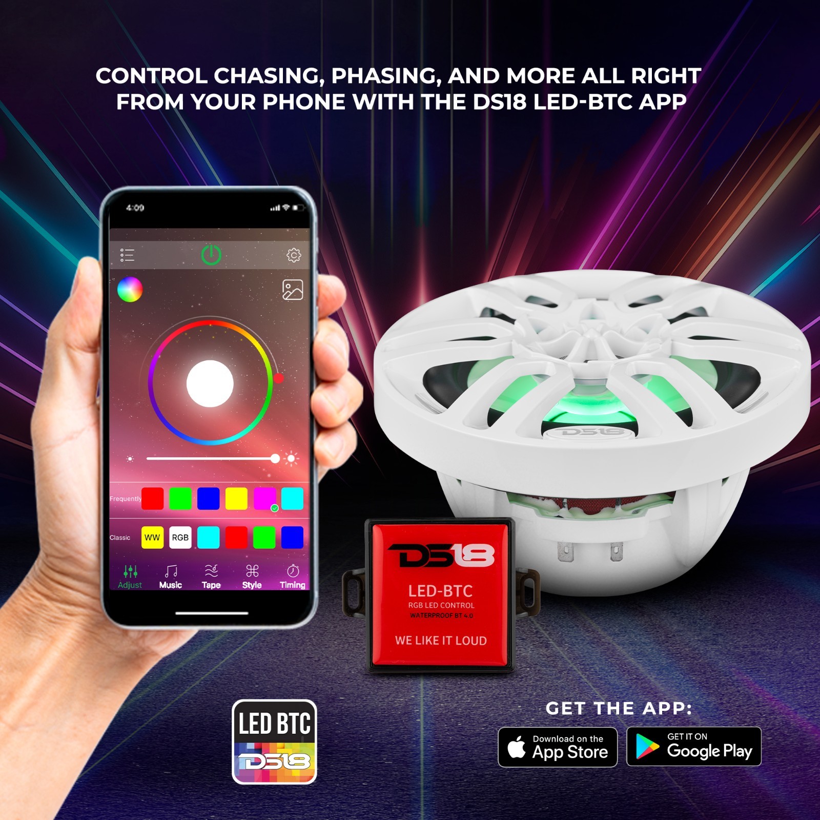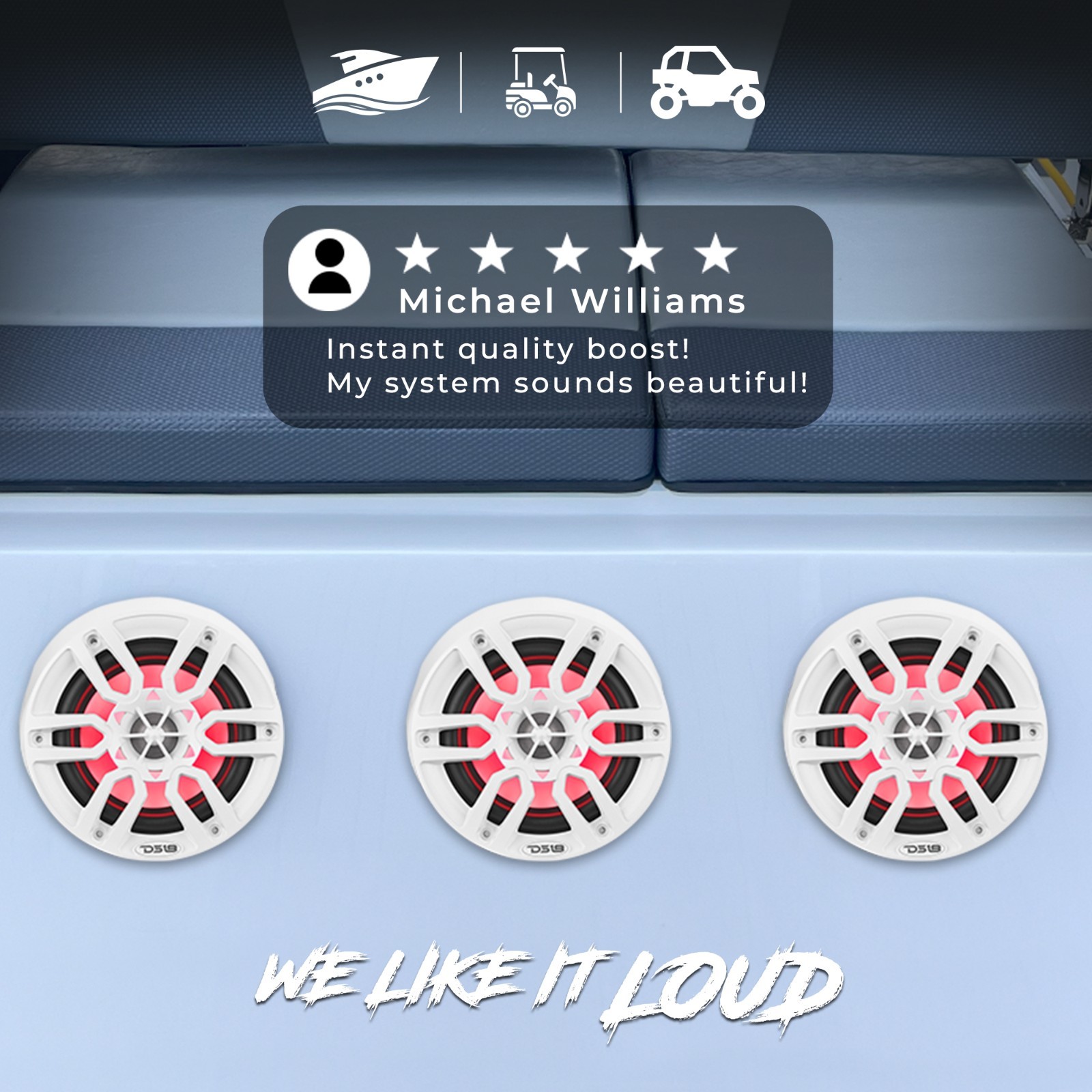как выглядит DS18 2x 6.5" 2-Way Marine Speakers with RGB Lights and Bluetooth Controller фото