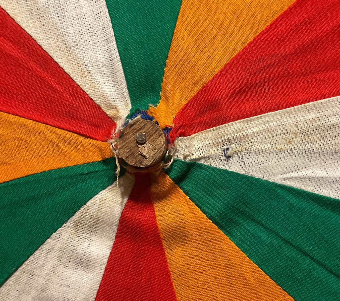 Vintage Child s Parasol Umbrella Applique Birds Cloth Fabric Wood Handle