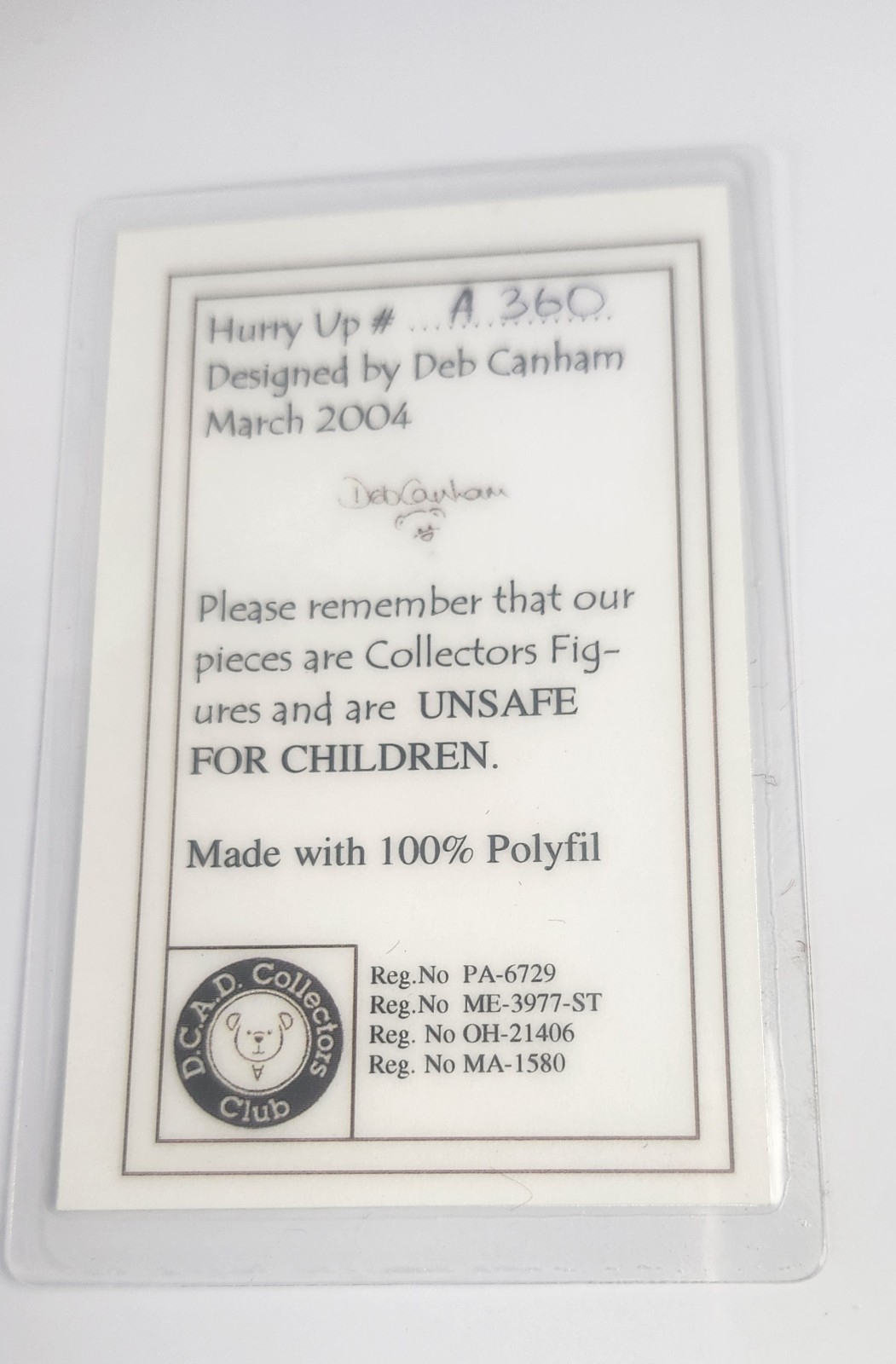 Deb Canham Hurry Up A360 Miniature Bear on a Snail 18th Club Piece