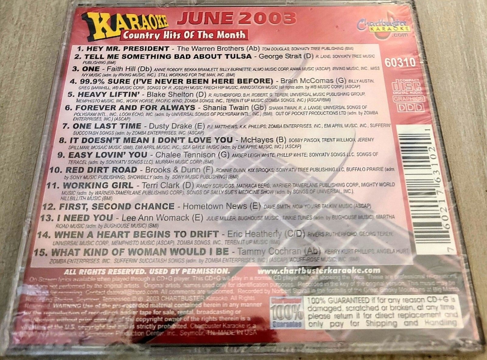 Chartbuster Karaoke Country June 2003 CB60310 CDG Strait Twain Dunn Clark Womack