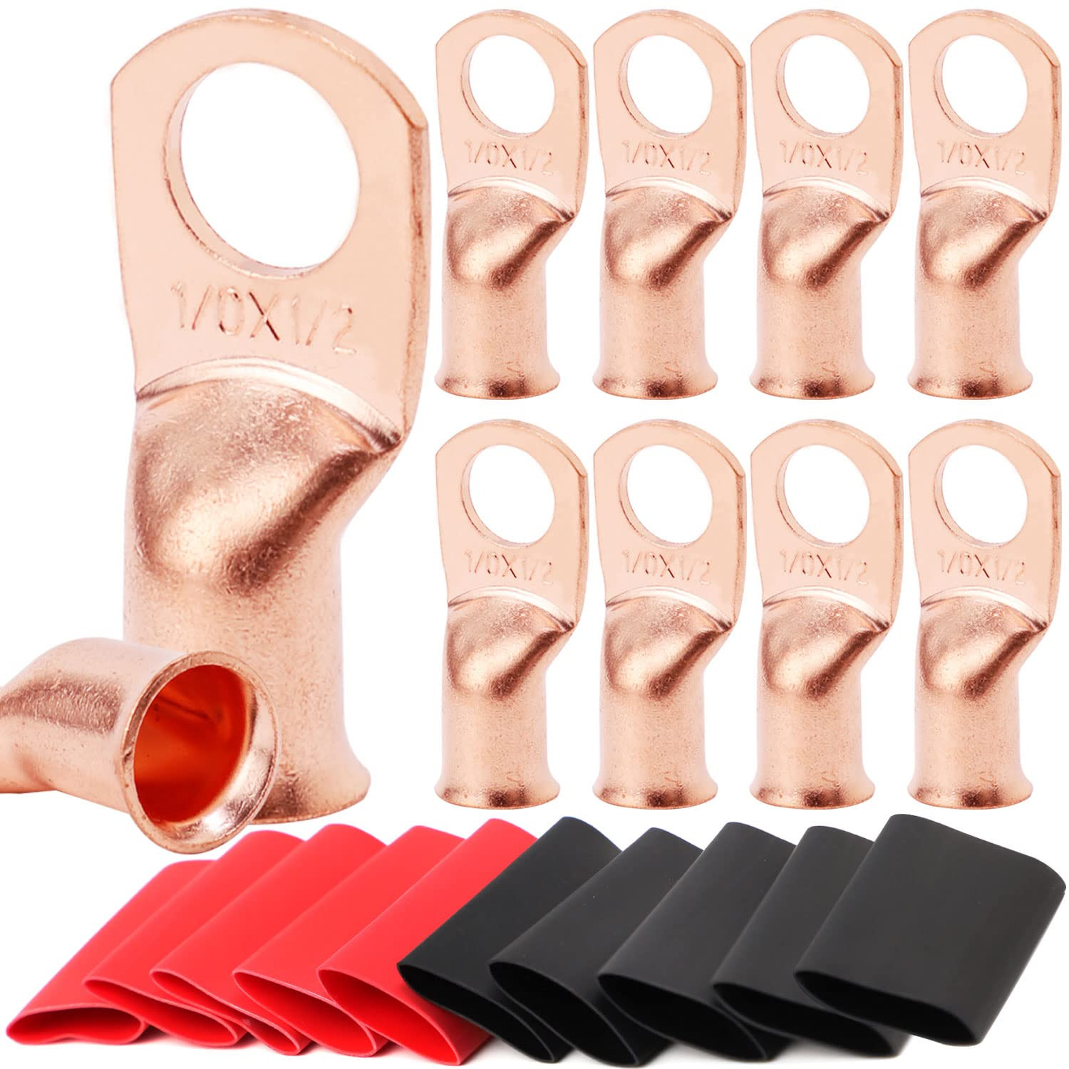 10Pcs 1/0 AWG-1/2 Battery Lugs,Heavy Duty Wire Lugs,Ring Terminals,Battery Cable