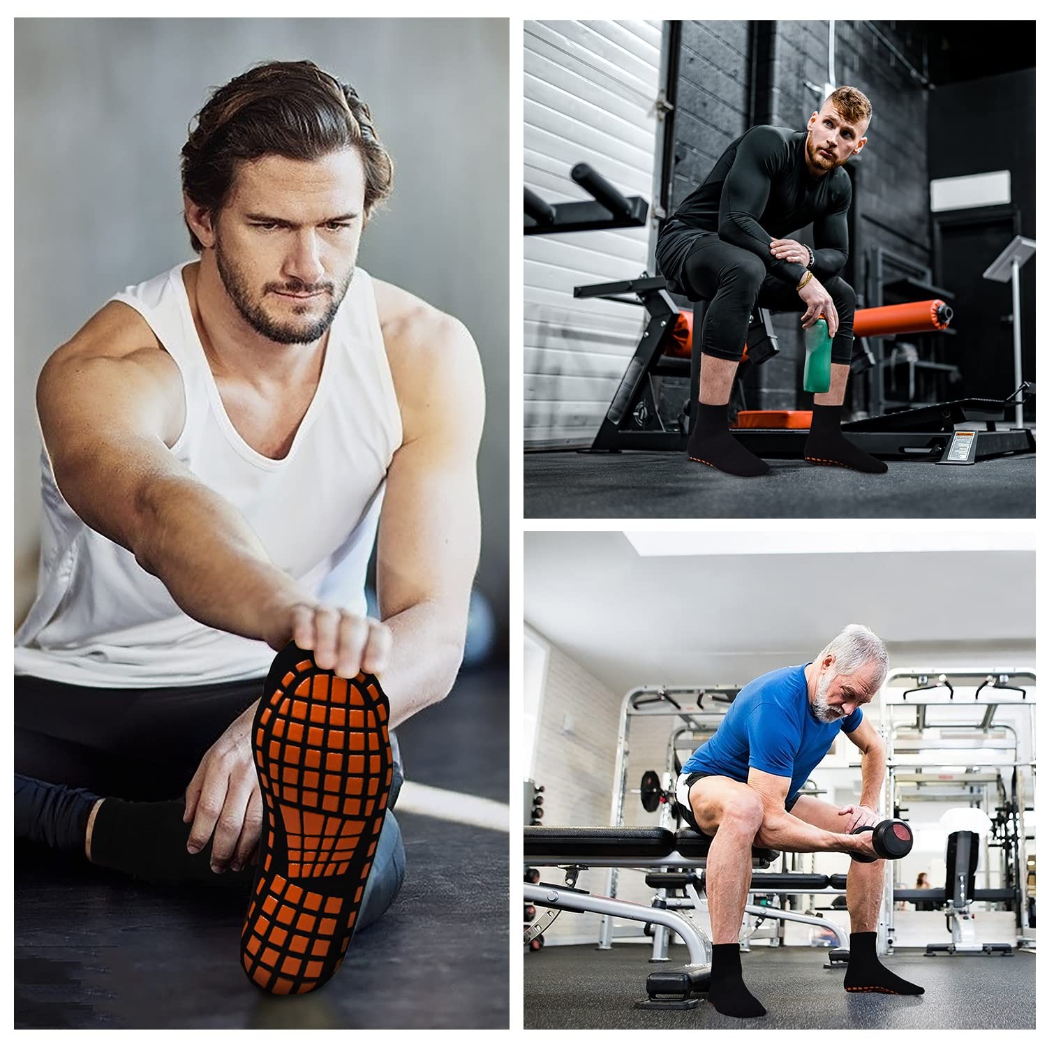 Men Non Slip Sticky Grips Socks 3 Pairs Tile Wood Floors Anti-Skid Workout