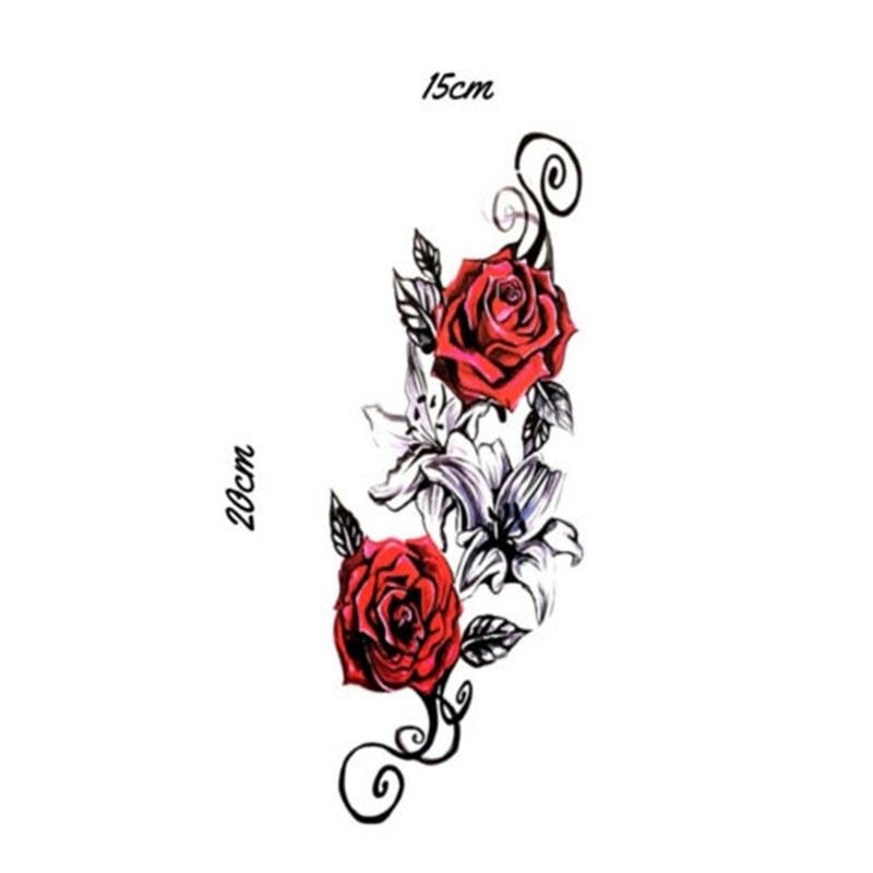Tattoos Stickers Art 3D Rose Body Red Rose Flower Temporary Tatoo Waterproof