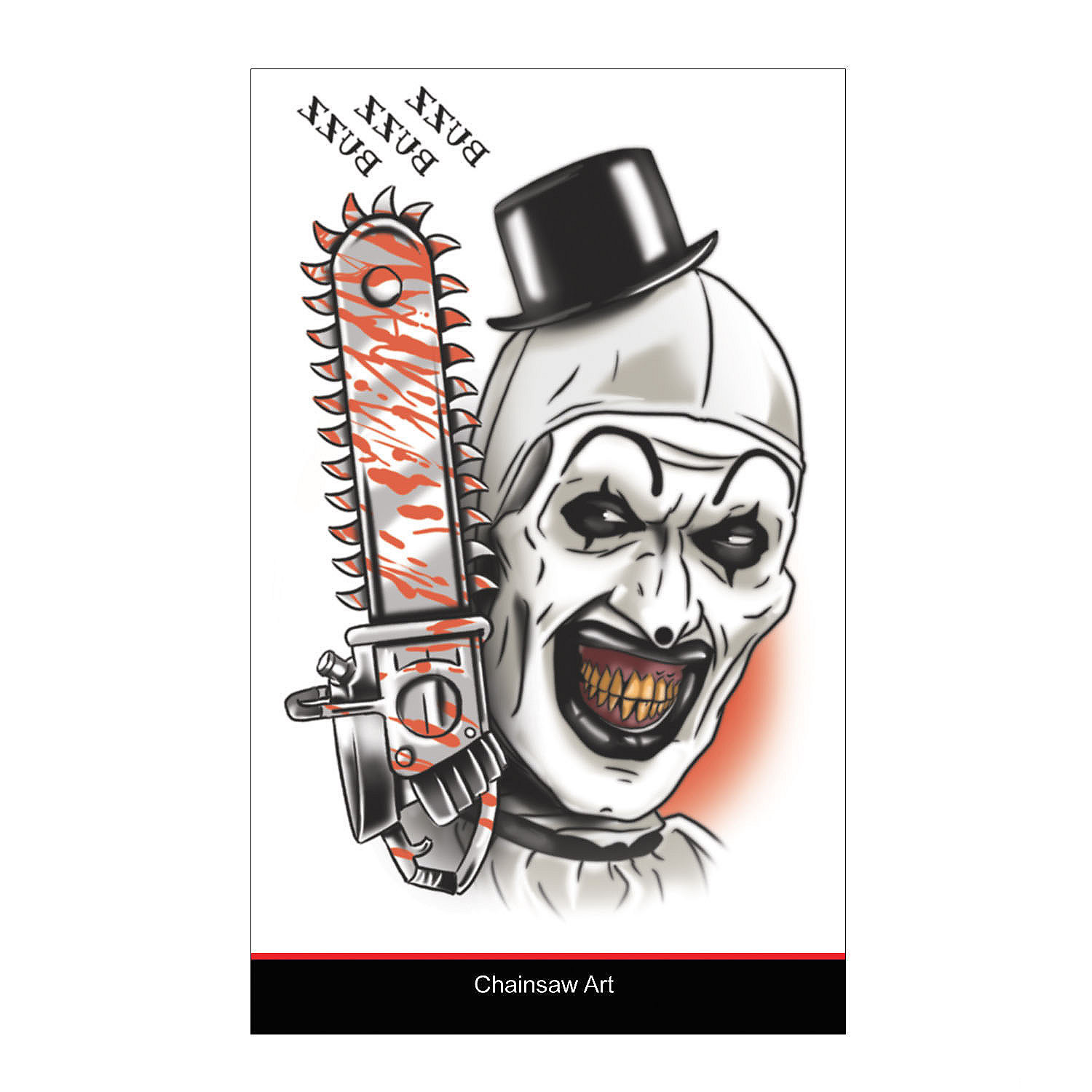 Tinsley Transfers Terrifier Art the Clown Chainsaw Art Temporary Tattoo