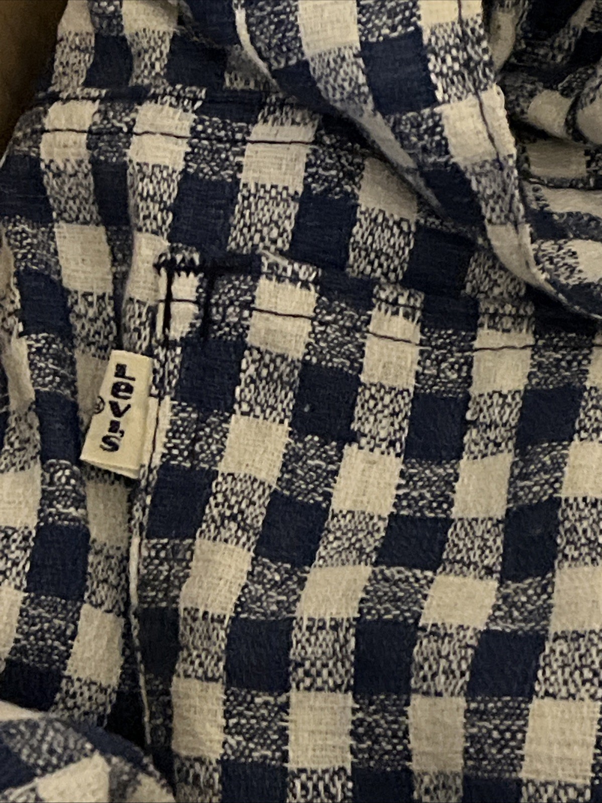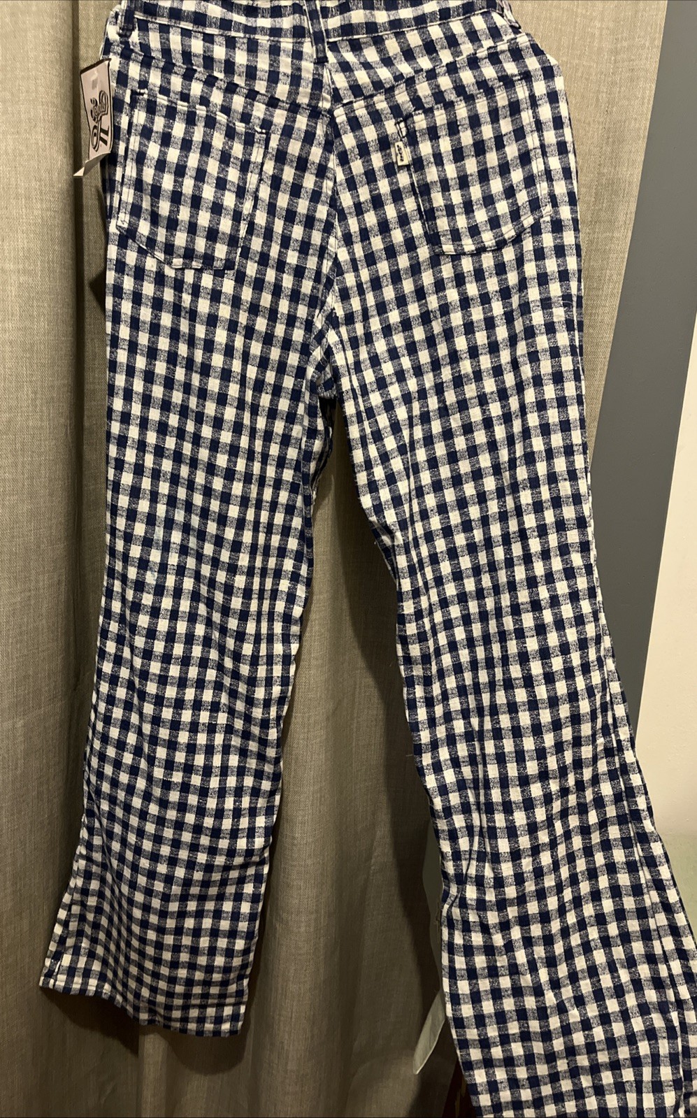 как выглядит Vintage 70s Gingham Checkered Pants - Blue White - Flared - Original Tags Read фото