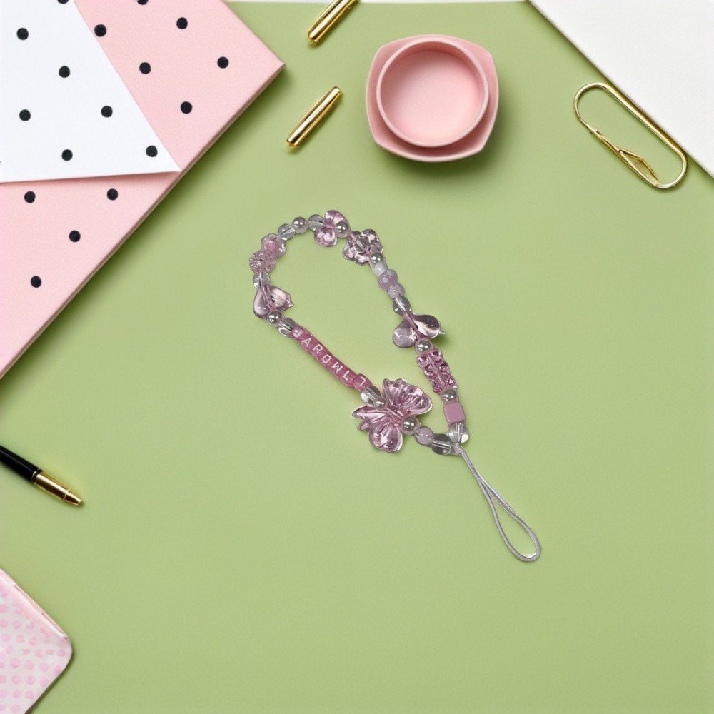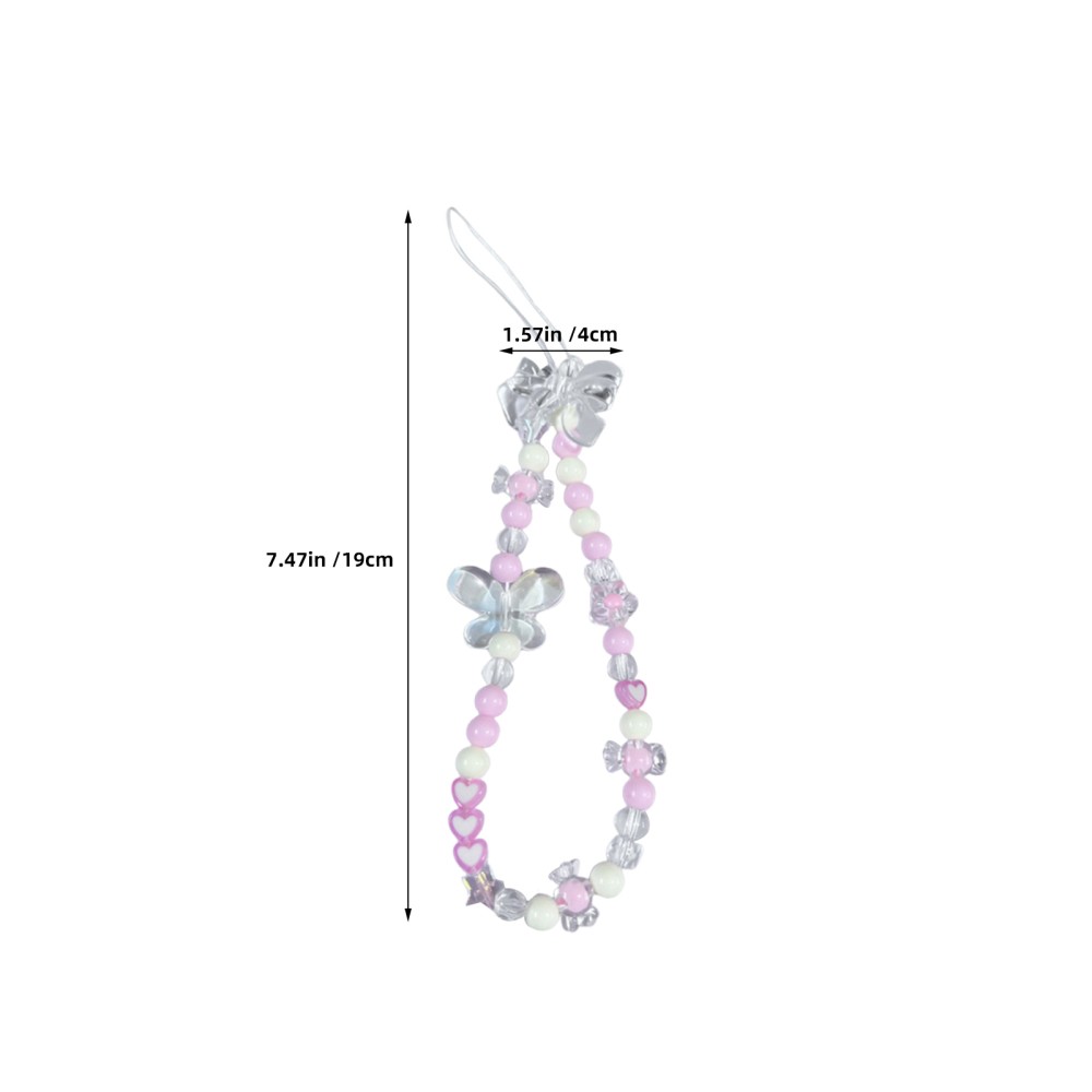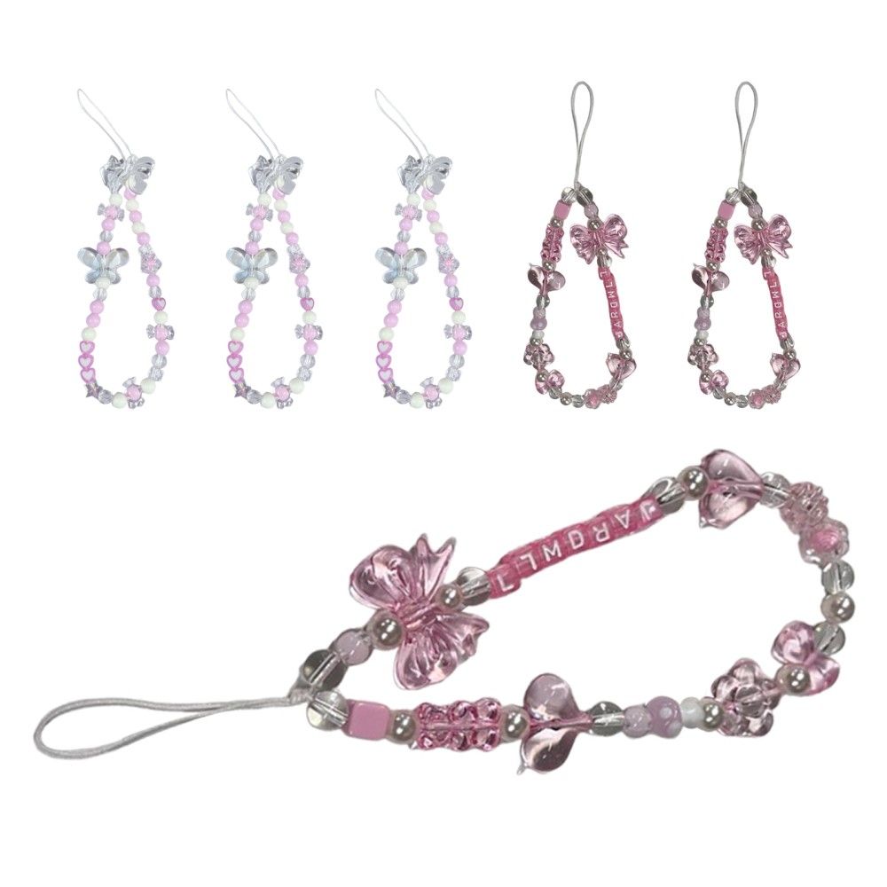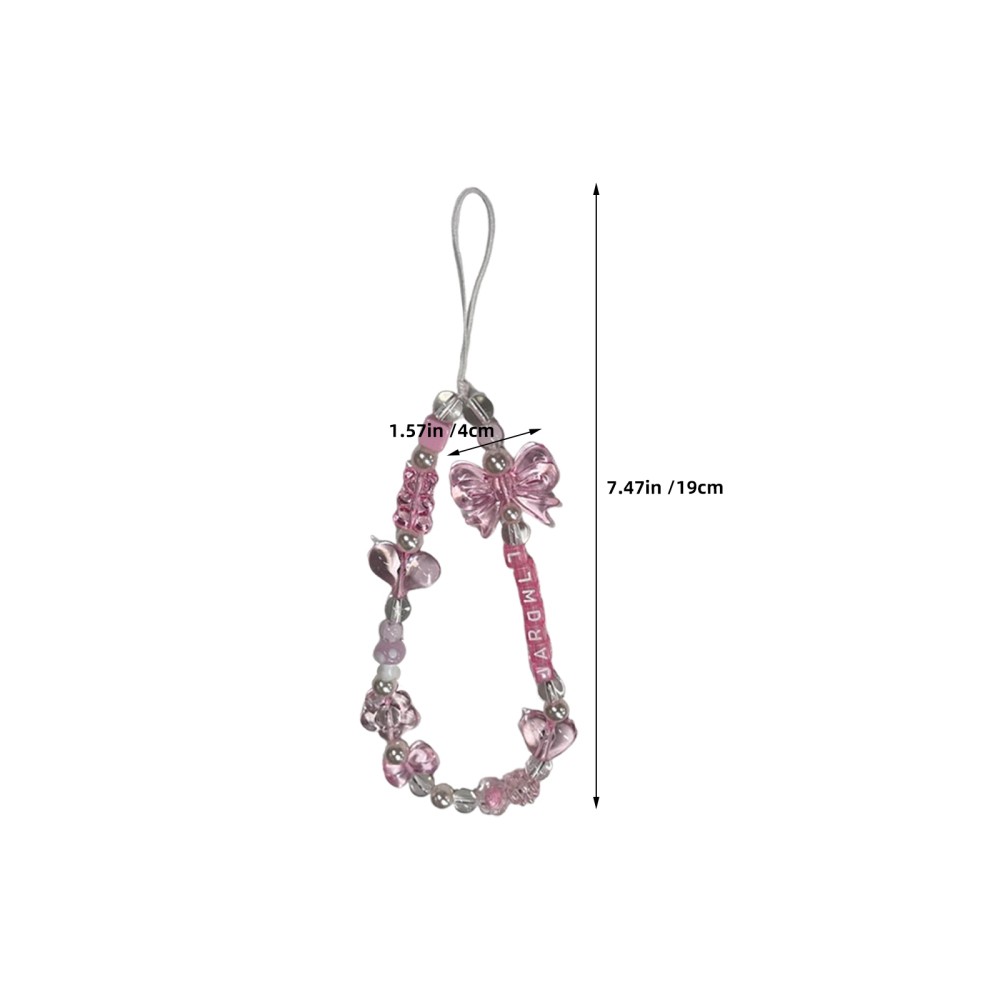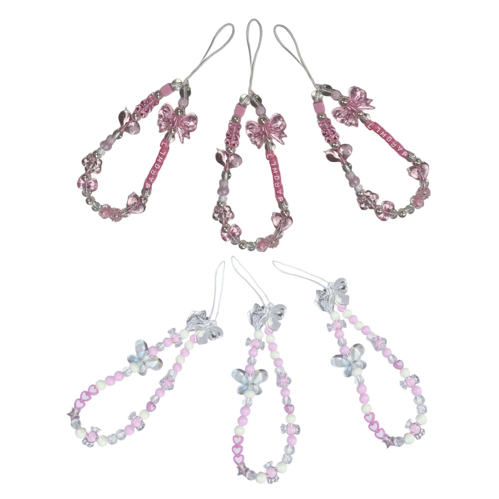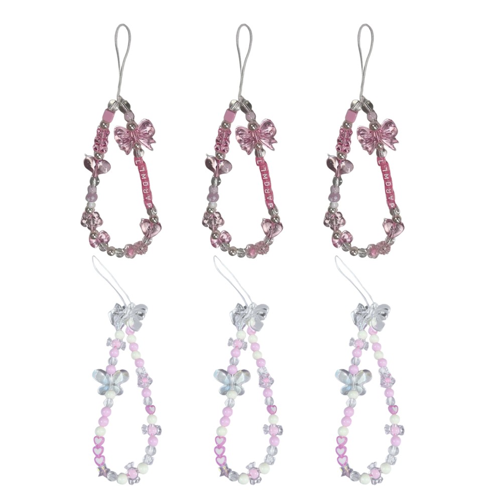 6pcs Beaded Phone Charm - Short Cute Mobile Phone Lanyard With Heart Bow Flower