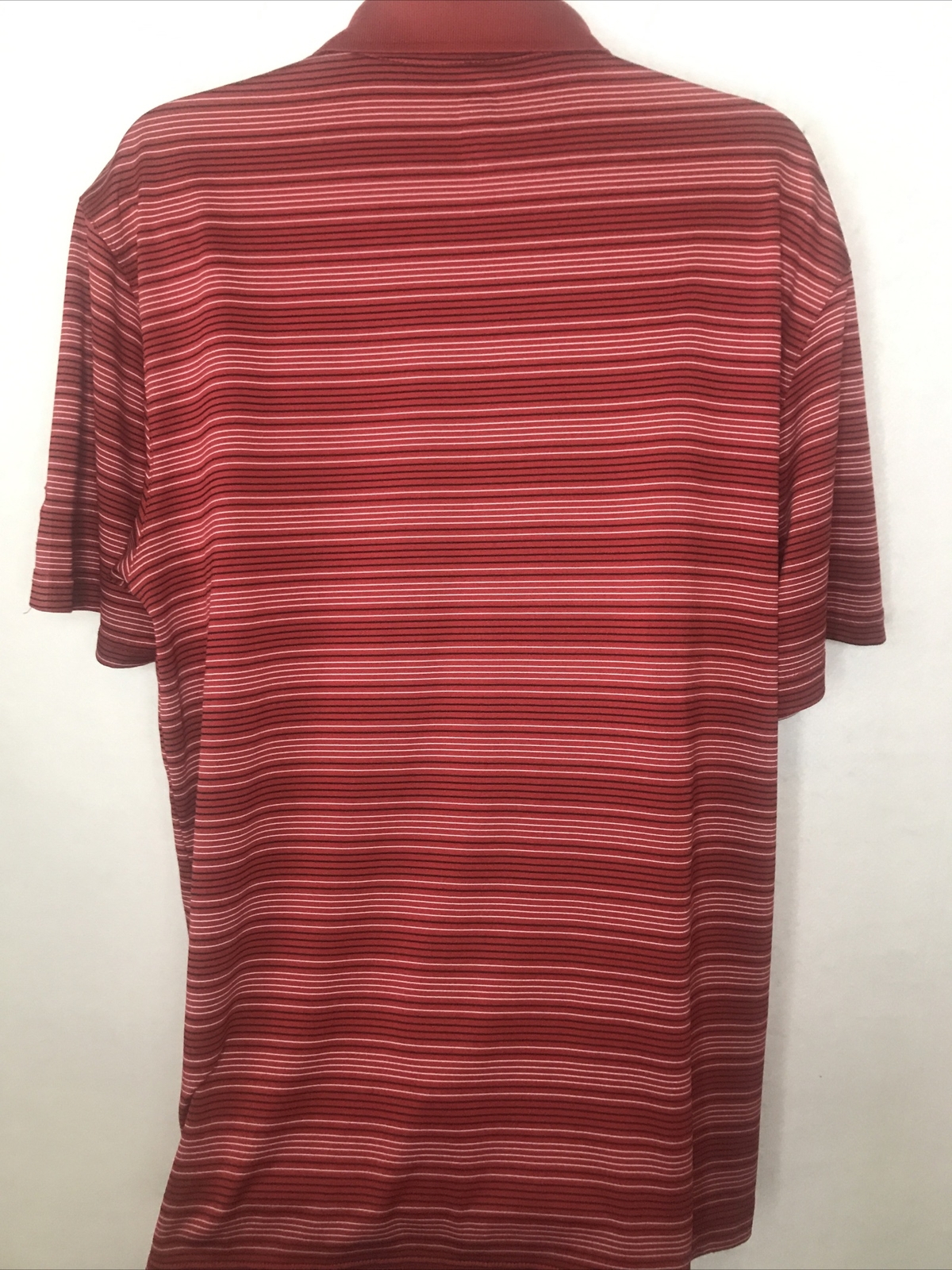 PGA Tour Men's Red Striped 3 Button Short Sleeve Polo Golf Shirt - Size Medium