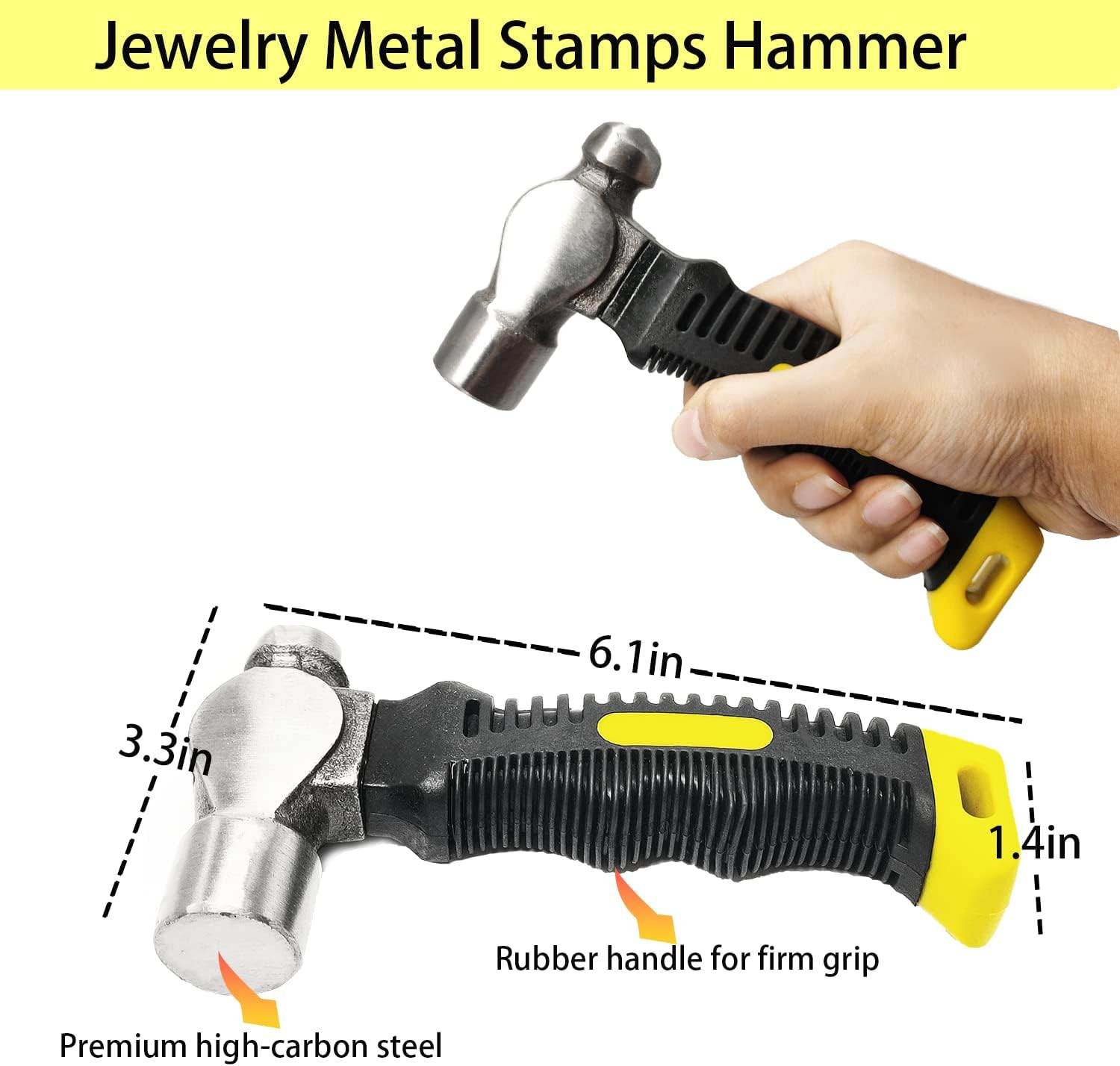 Steel Bench Block and Metal Stamping Hammer Kit, No-Rebound Metal Bench Block, J
