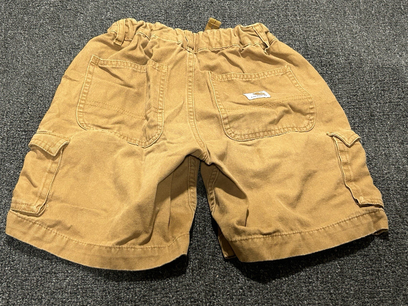 как выглядит Carhartt Boys Size 12 Canvas Cargo Work Shorts Brown Button Zip Pockets фото