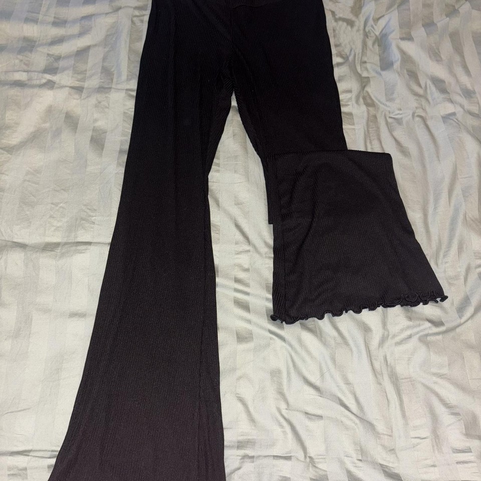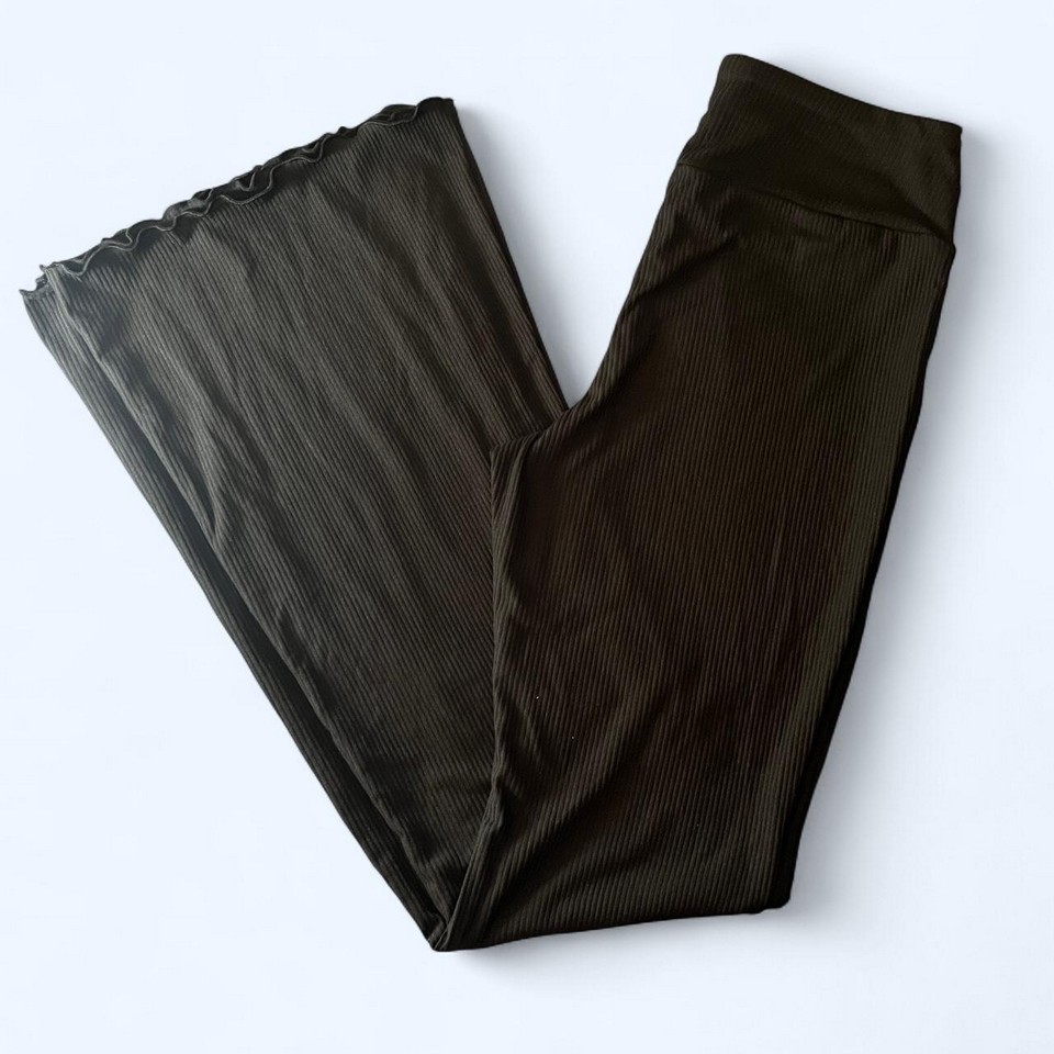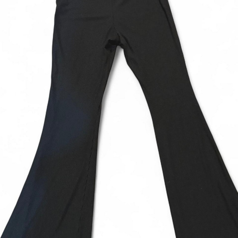 как выглядит No Boundaries SMALL Rib Knit Flare Lettuce Hem Leggings Pants Black NWOT фото