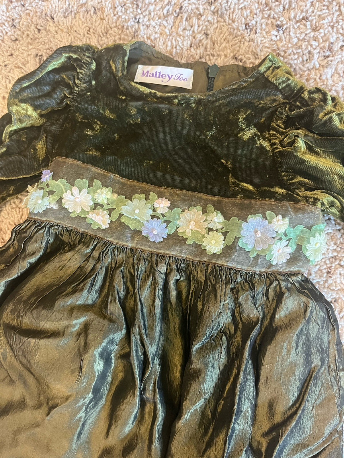 как выглядит Malley Too Green Velveteen And Satin Floral Dress фото