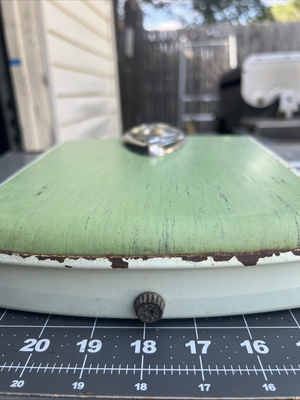как выглядит Vintage Borg Bathroom Scale Avocado Green Mid Century Art Deco Mod Bubble Glass фото